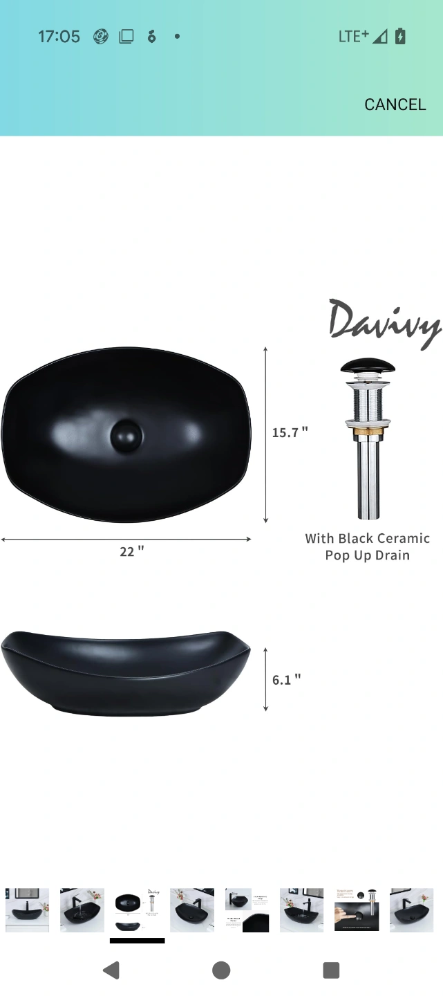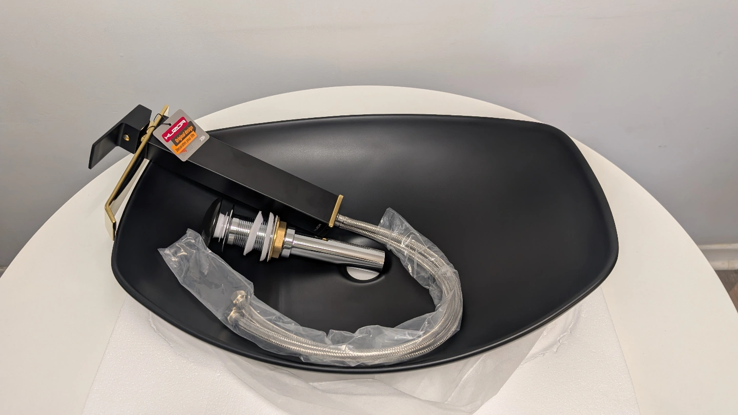 Brand new, never installed Davivy 22" x 15.7'' Large Matte Black Oval Vessel Sink with Pop Up Drain and matching Kuzor vessel Faucet. Together on Amazon, $226.98 + tax.