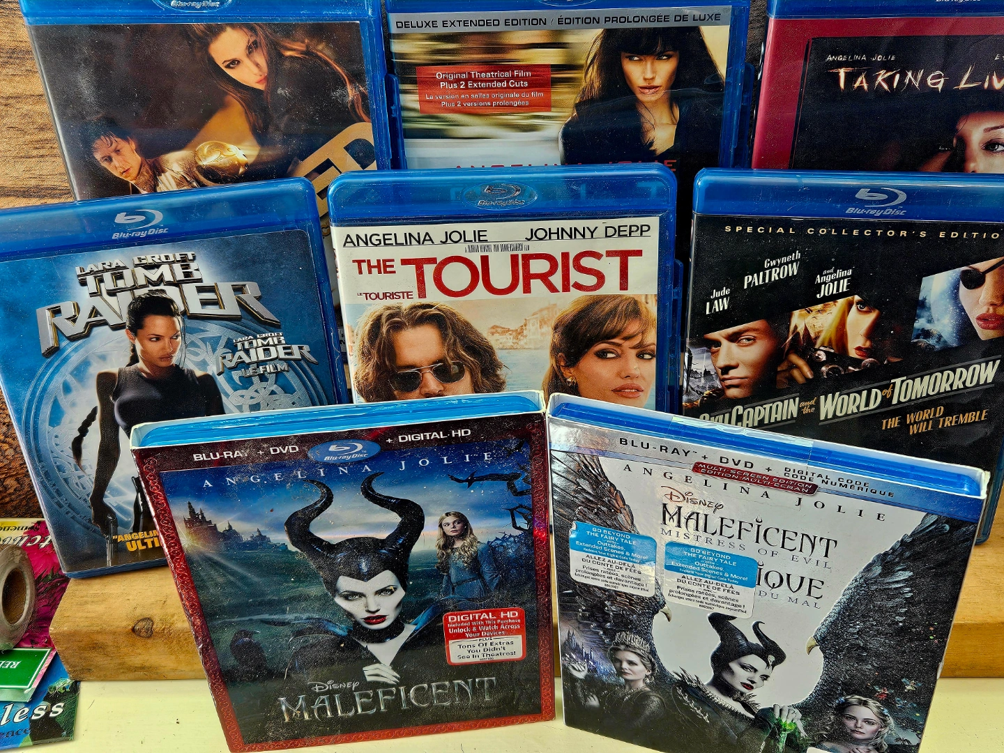 87Bundle of Angelina Jolie films on Blu-ray. Includes Taking Lives [Blu-ray] Salt (Deluxe Unrated Edition) [Blu-ray] Wanted [Blu-ray] Sky Captain and the World of Tomorrow [Blu-ray] The Tourist [Blu-ray] Lara Croft: Tomb Raider (Blu-ray) Maleficent [Blu-ray] Maleficent: Mistress of Evil [Blu-ray] . Great for collectors!