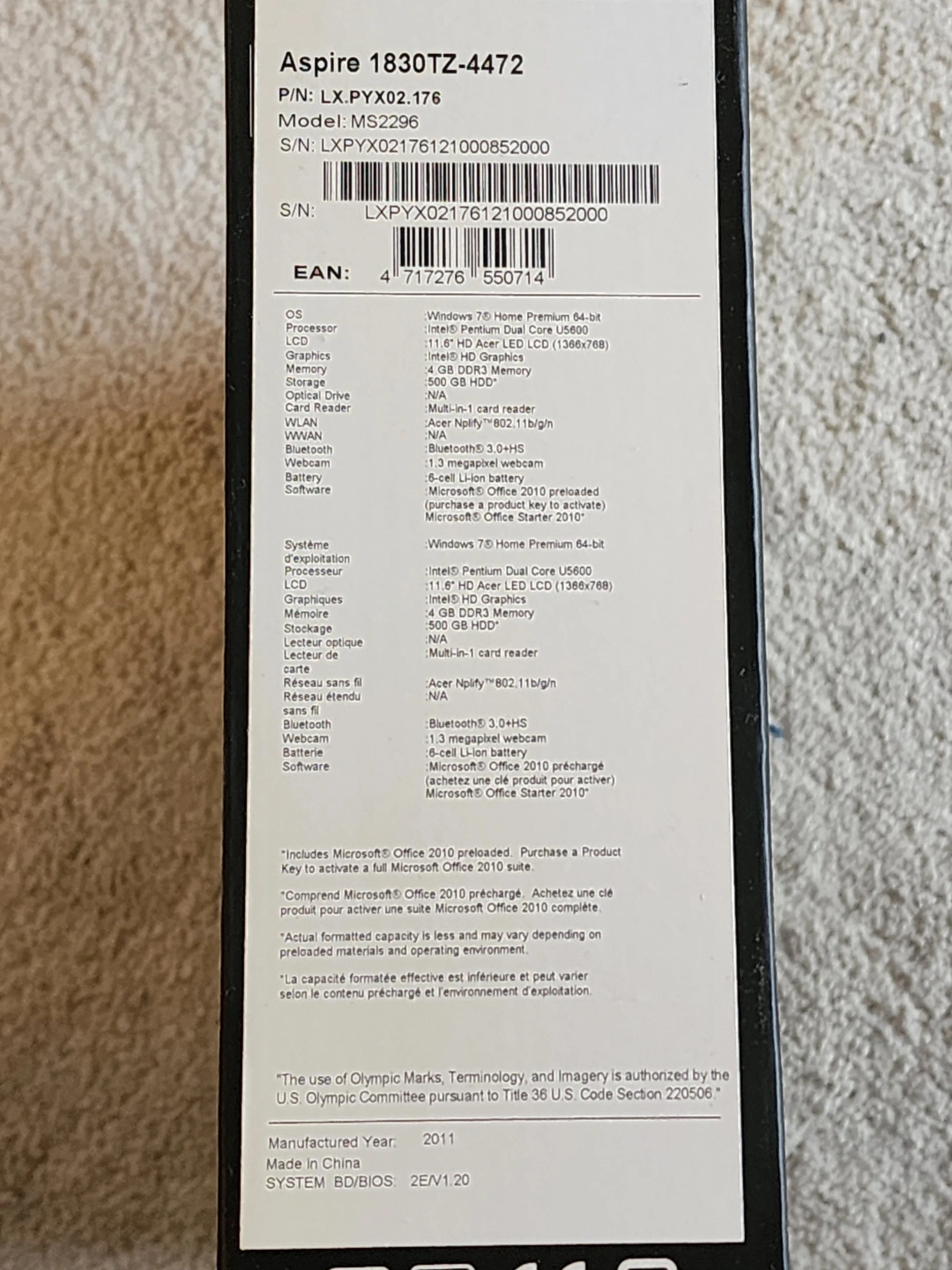Pre-loaded Operating System: Windows 7 Premium