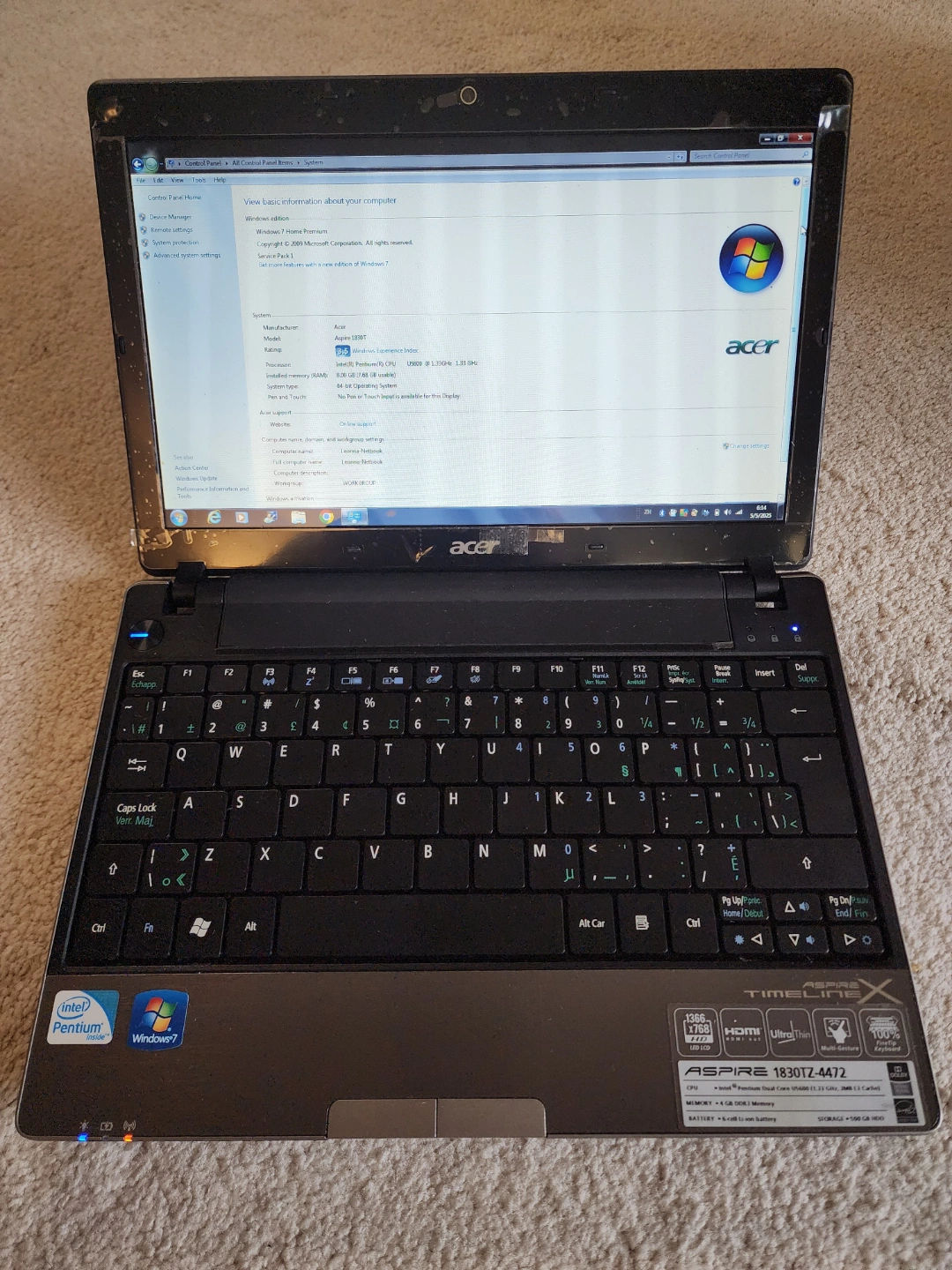 Acer Aspire Timeline X Intel U5600 8GB/240GB 11.6" netbook-Black