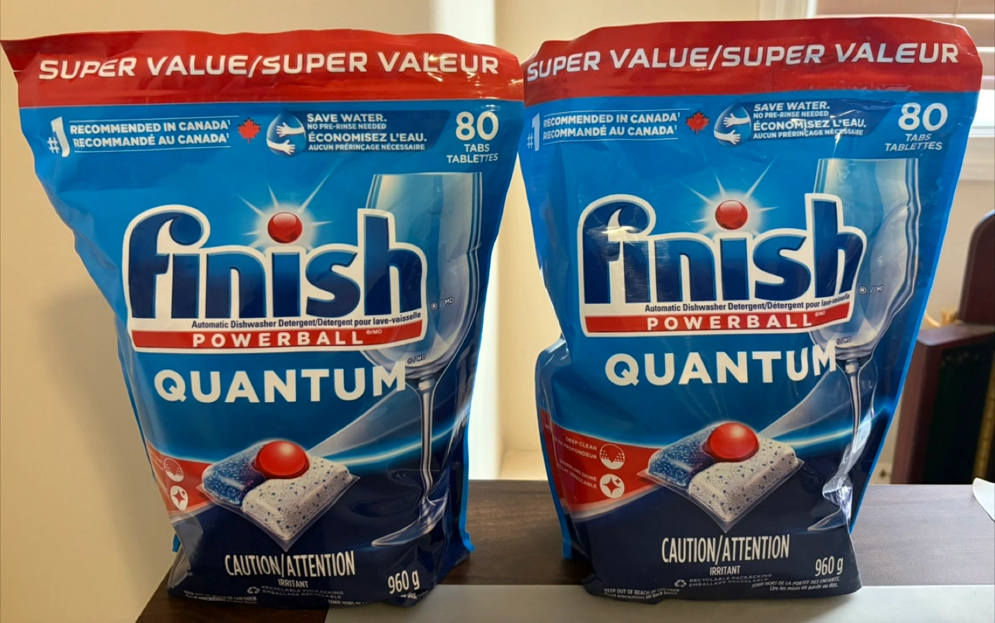 $17 Each Bag - Finish Powerball Quantum dishwasher detergent tablets. 80 utablets per bag. 960g total weight. Recommended in Canada.