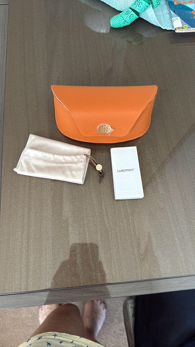 Tory Burch Orange Eyeglass Case with Cleaning Cloth