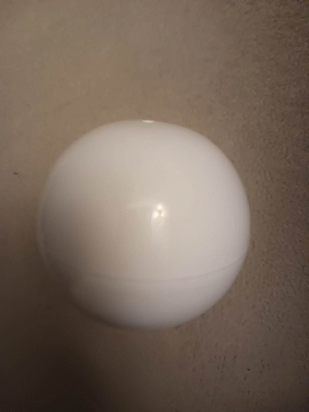 White plastic ball filled with little toys and candys, approximately 7cm diameter. Great for a birthday partys or craft projects. Phone stand is for size reference.