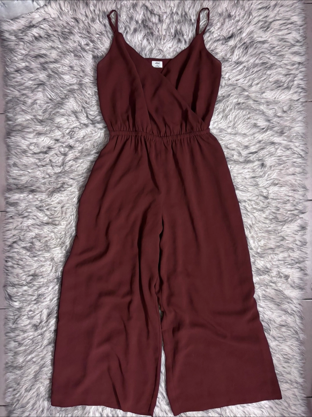 Sleeveless jumpsuit with a define waist and v-neckline. It’s made with a lightweight Japanese crepe fabric that has a matte finish.