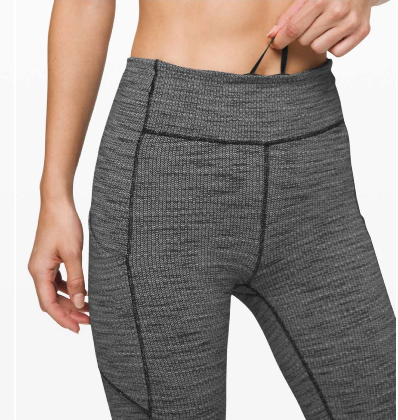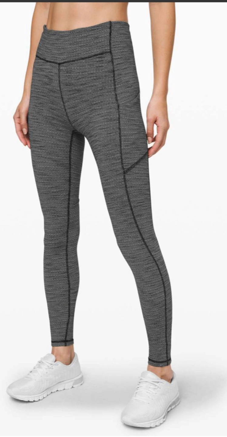 Lululemon leggings. Size 4. Luon Variegated Knit Black Heathered Black. High-waisted with pockets. Full length.