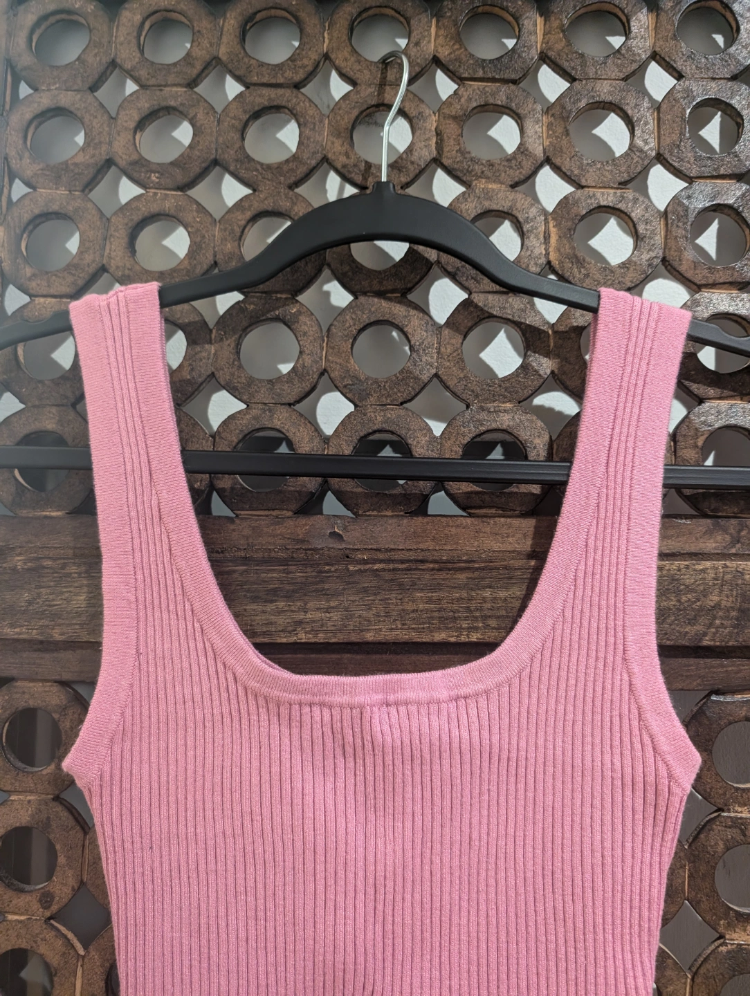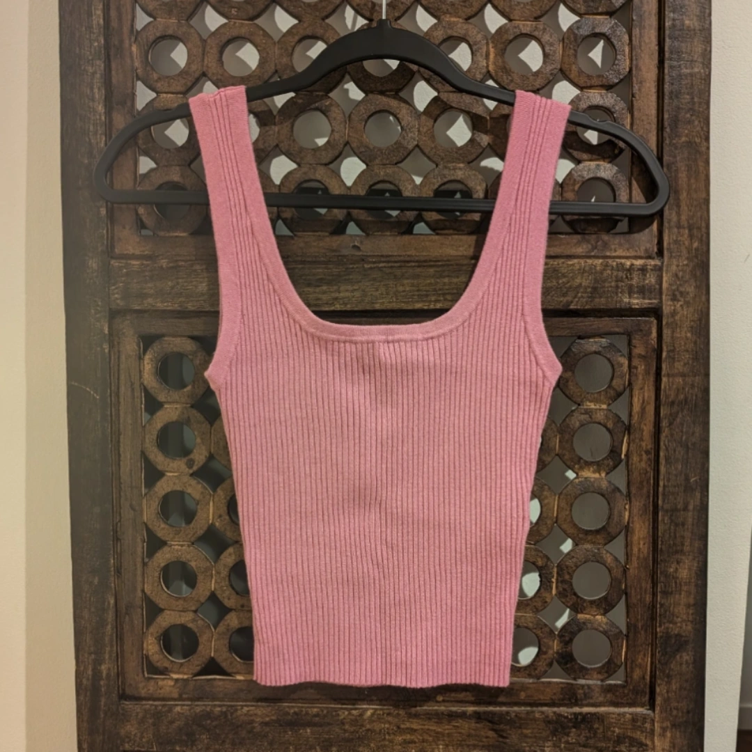 Women's pink ribbed knit tank top. Scoop square neck. Stretchy fit. Great condition.
