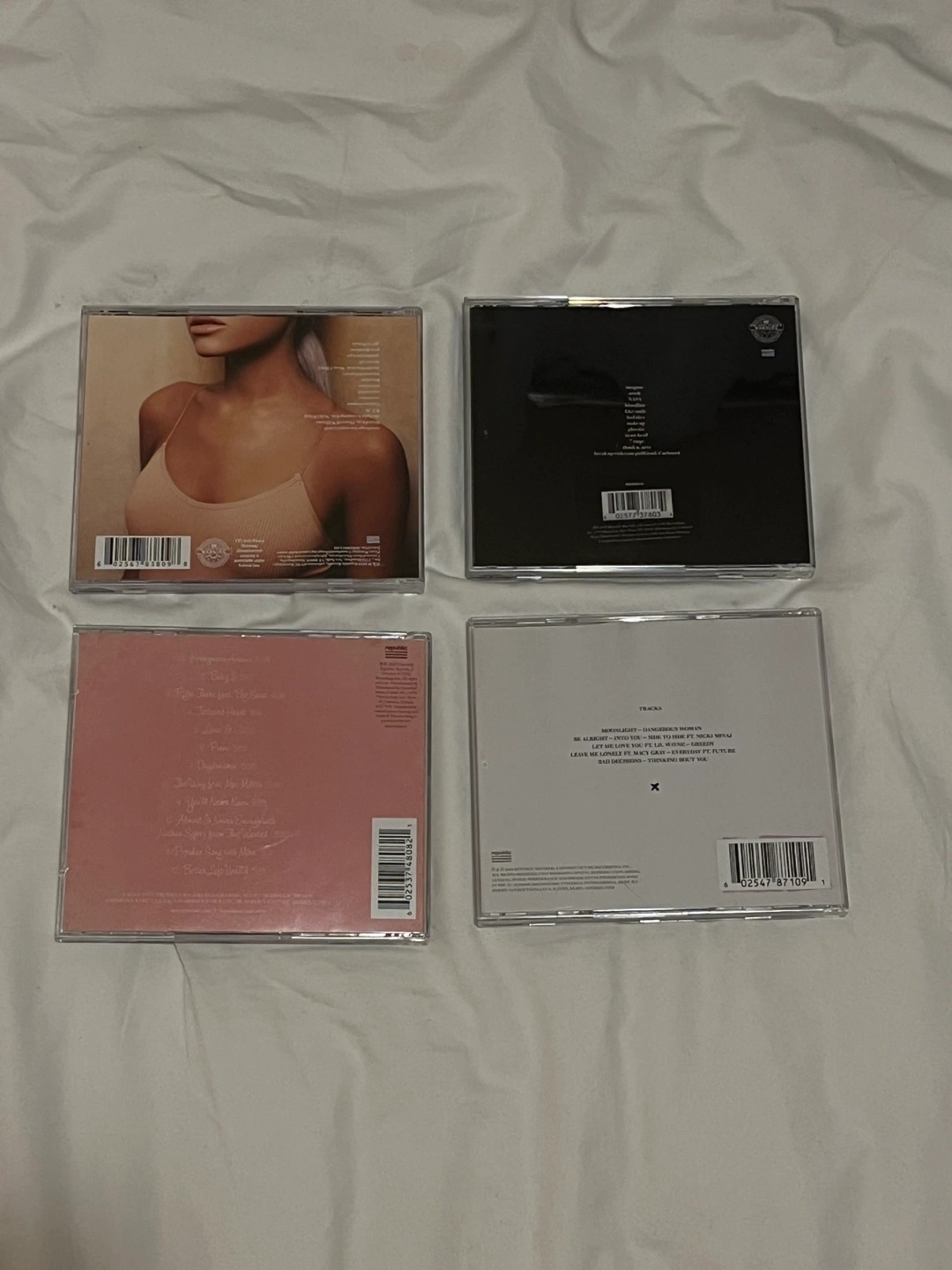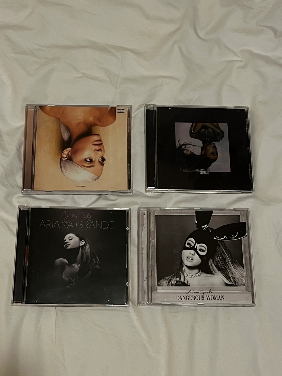 Four Ariana Grande CDs. Includes Sweetener, Thank U, Next, Yours Truly, and Dangerous Woman. All in perfect condition.