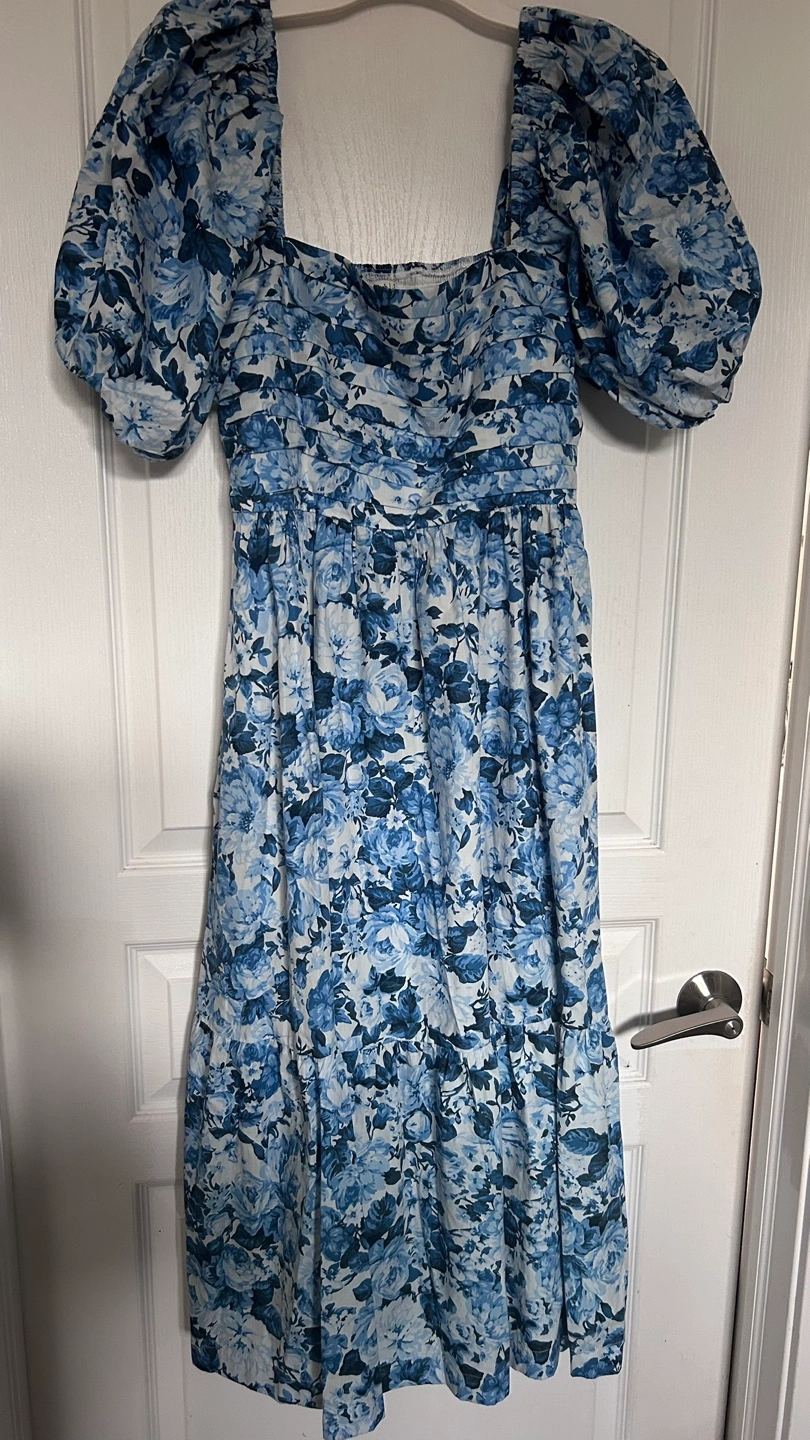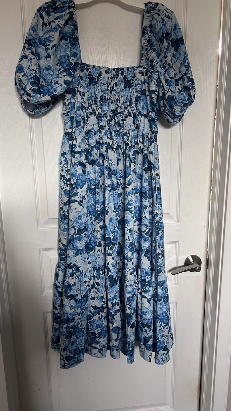 Beautiful blue floral midi dress. Puff sleeves and smocked bodice. Size small. Lightweight and perfect for spring or summer.