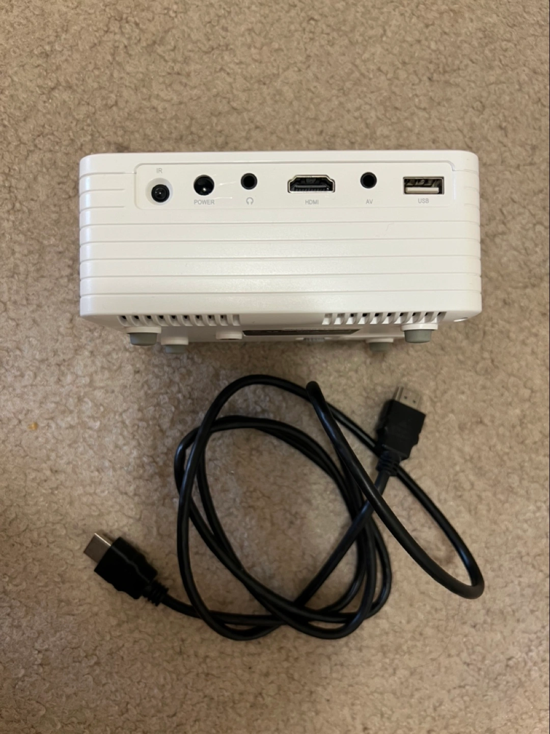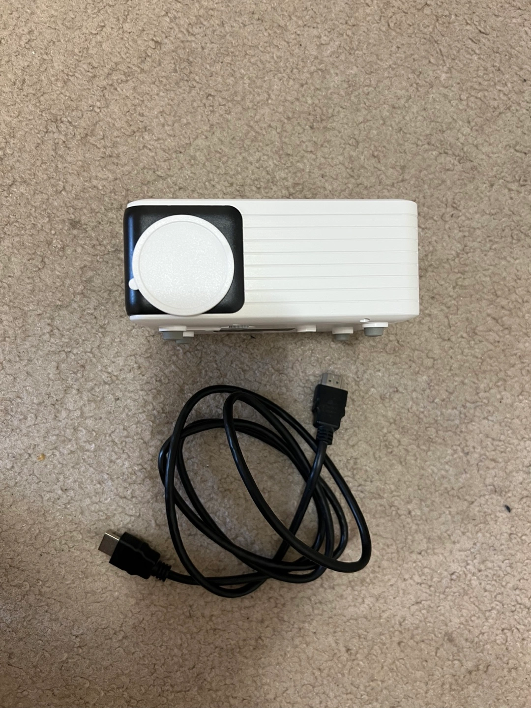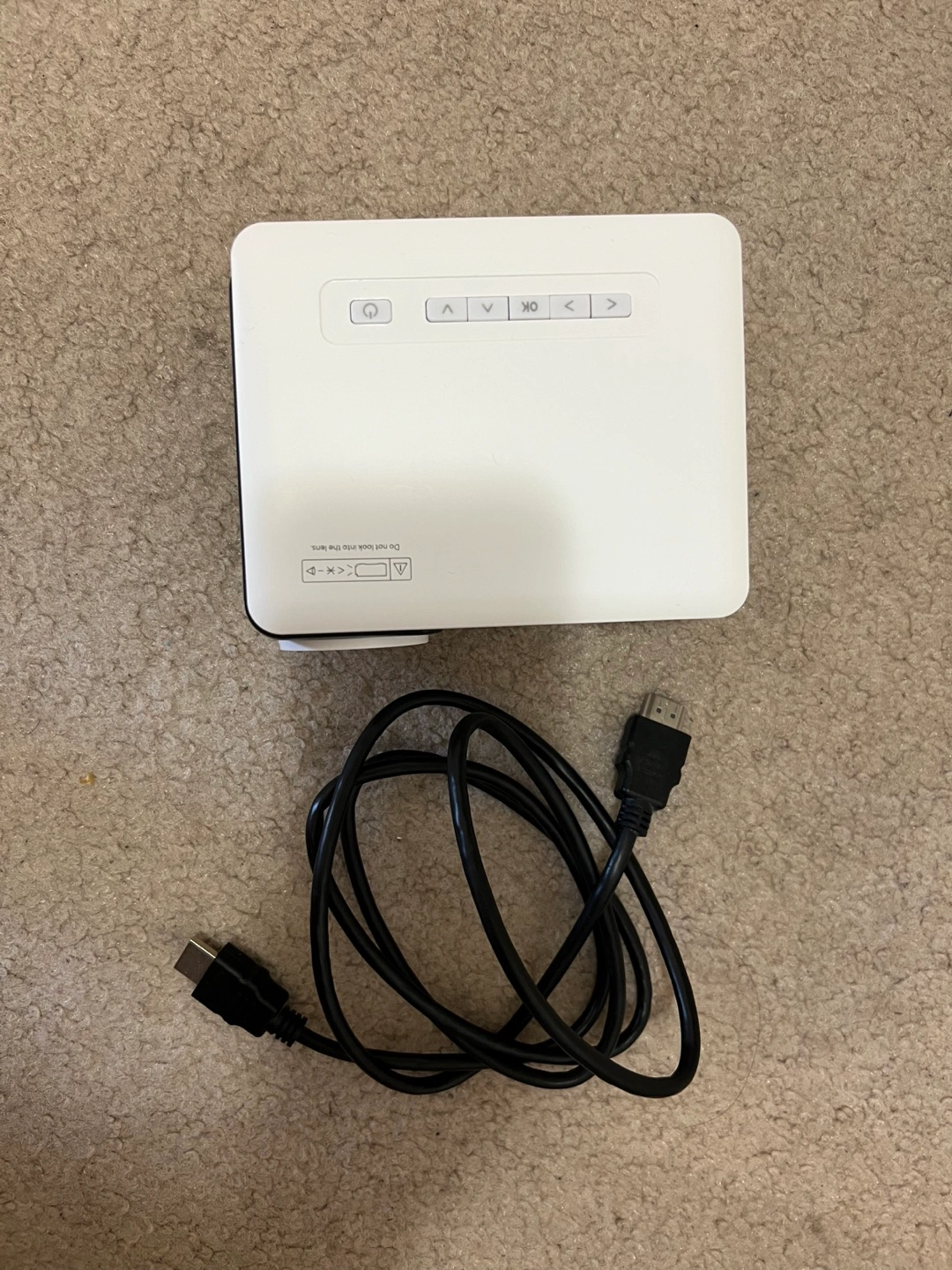 Portable mini projector, perfect for presentations or home entertainment. Comes with an HDMI cable for easy connectivity, power cable & remote.