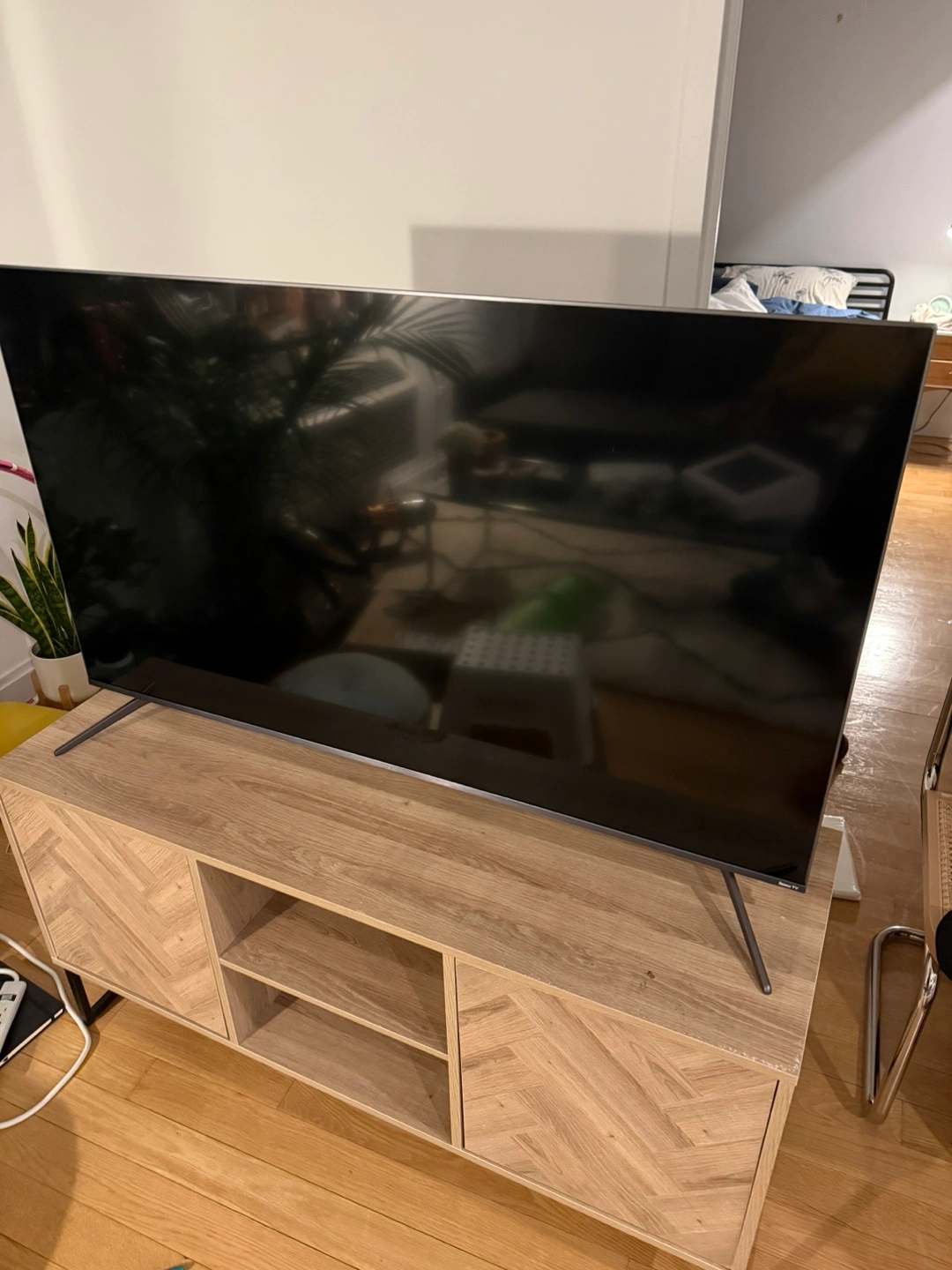 Selling this stunning Nathan James Herringbone TV Stand (retails for $199) — only lightly used and in perfect condition. Beautiful golden oak finish, fits up to 50” TVs.