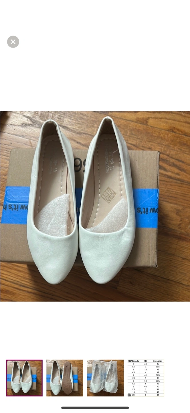 women's flats. White, pointed-toe design. Comes in original packaging.