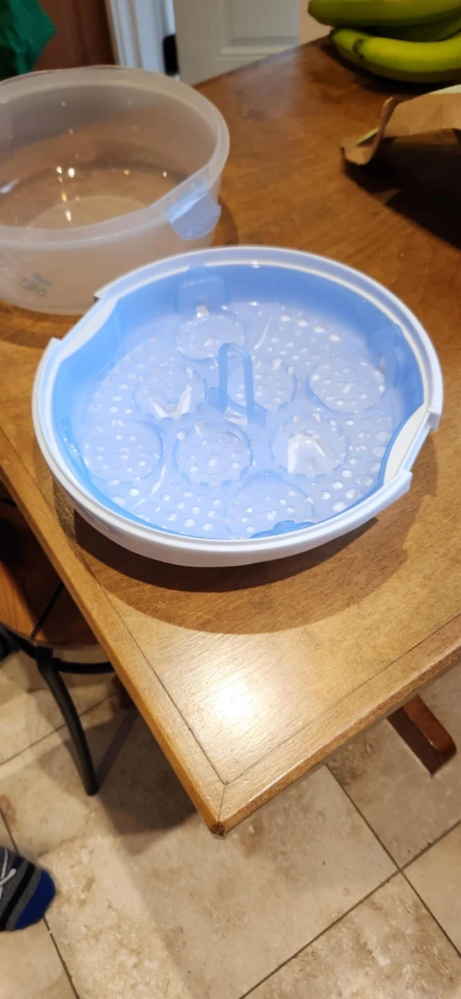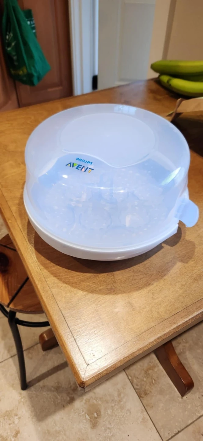 Microwave baby bottle sterilizer. Great for sterilizing bottles and other baby items. Includes a removable tray. Used only a few times.