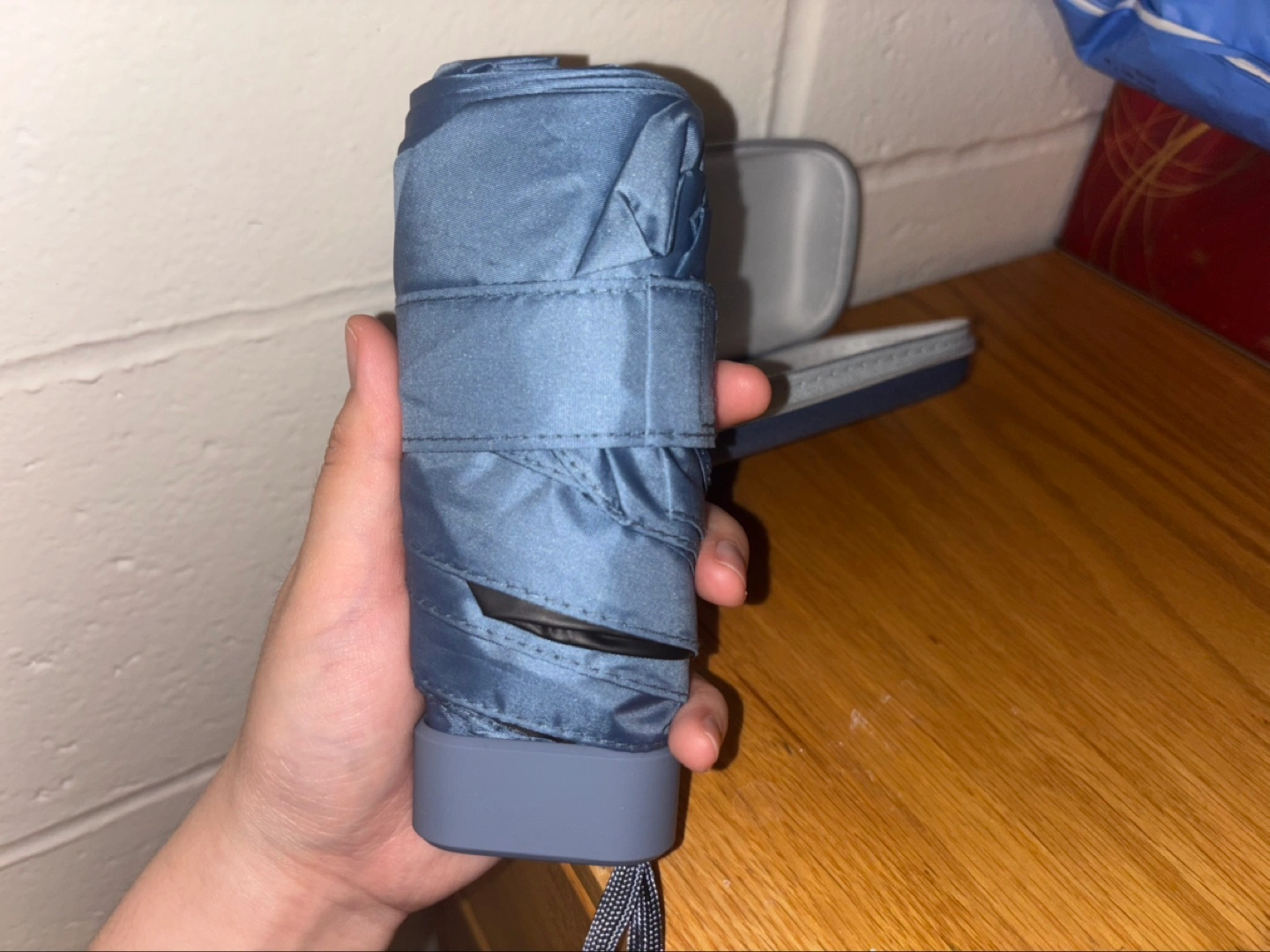 Portable umbrella, great for travel. Includes a protective case. Blue color. Lightweight and easy to use. NEVER USED.
