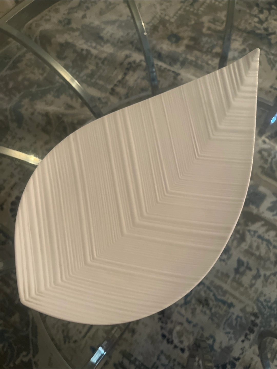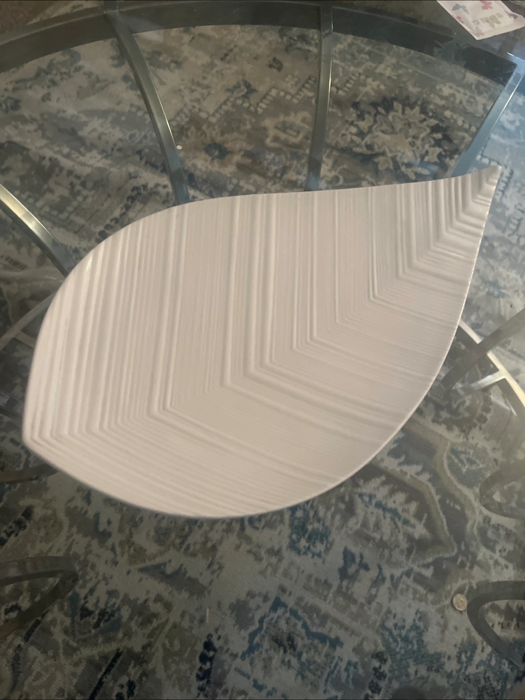Buy & SellBeautiful white ceramic leaf-shaped serving platterBeautiful white ceramic leaf-shaped serving platter$15Unique serving platter. Leaf design. White ceramic. Great for entertaining or home décor. Subtle texture.WHERE TO MEETCheck LocationView MapSELLERverifiedJessStrathearn36926 reviews0 chats·0 favorites·13 views