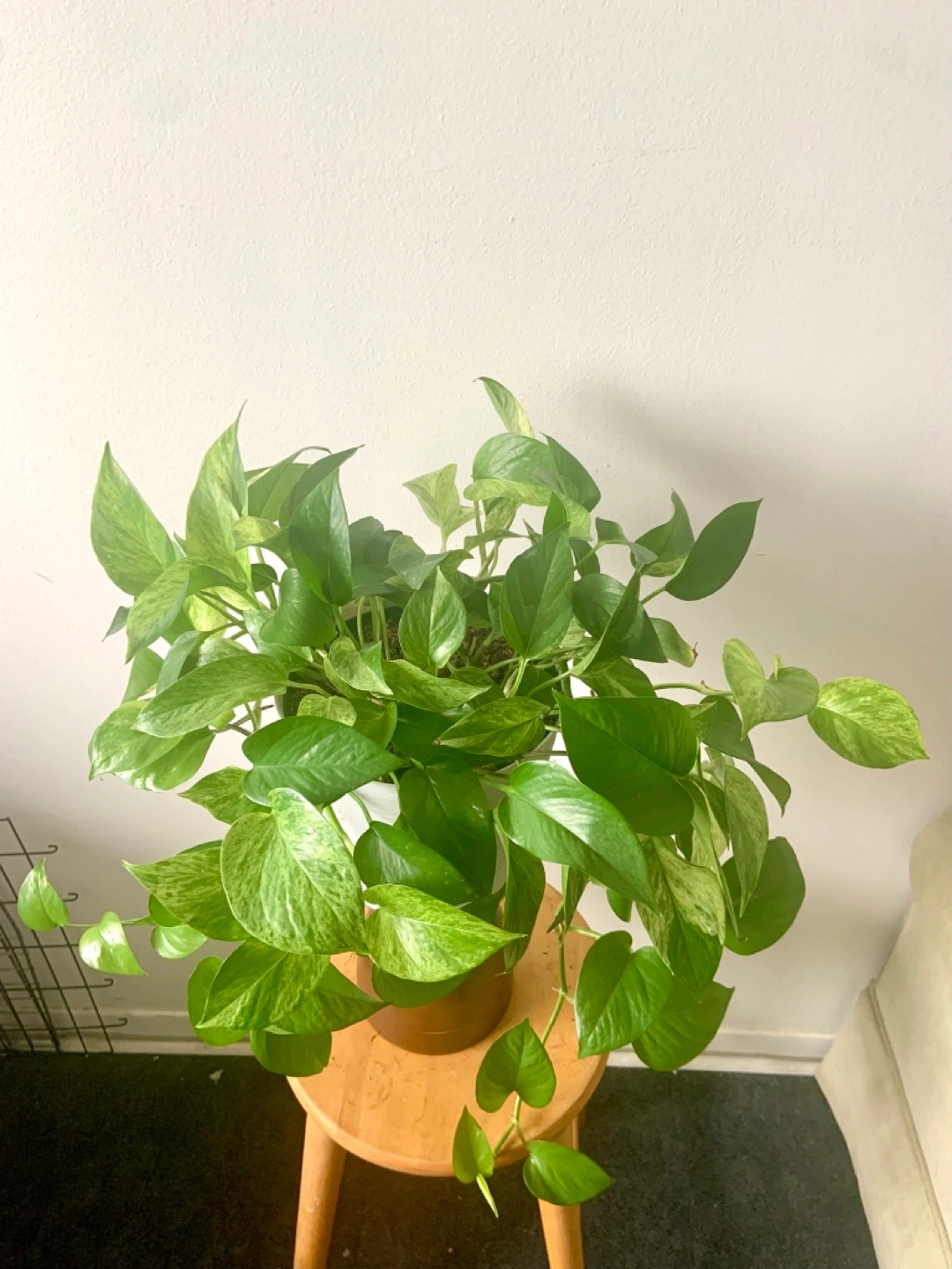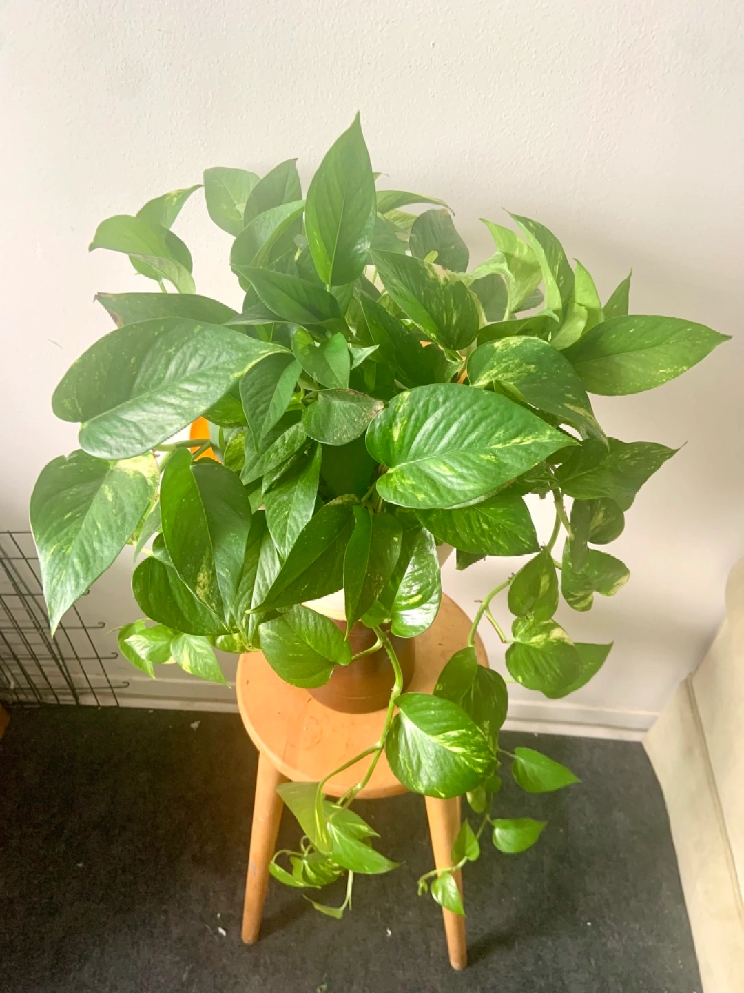 Healthy, established golden pothos. Lush green foliage with yellow variegation. Planted in a yellow 10” pot. Long trailing vines.