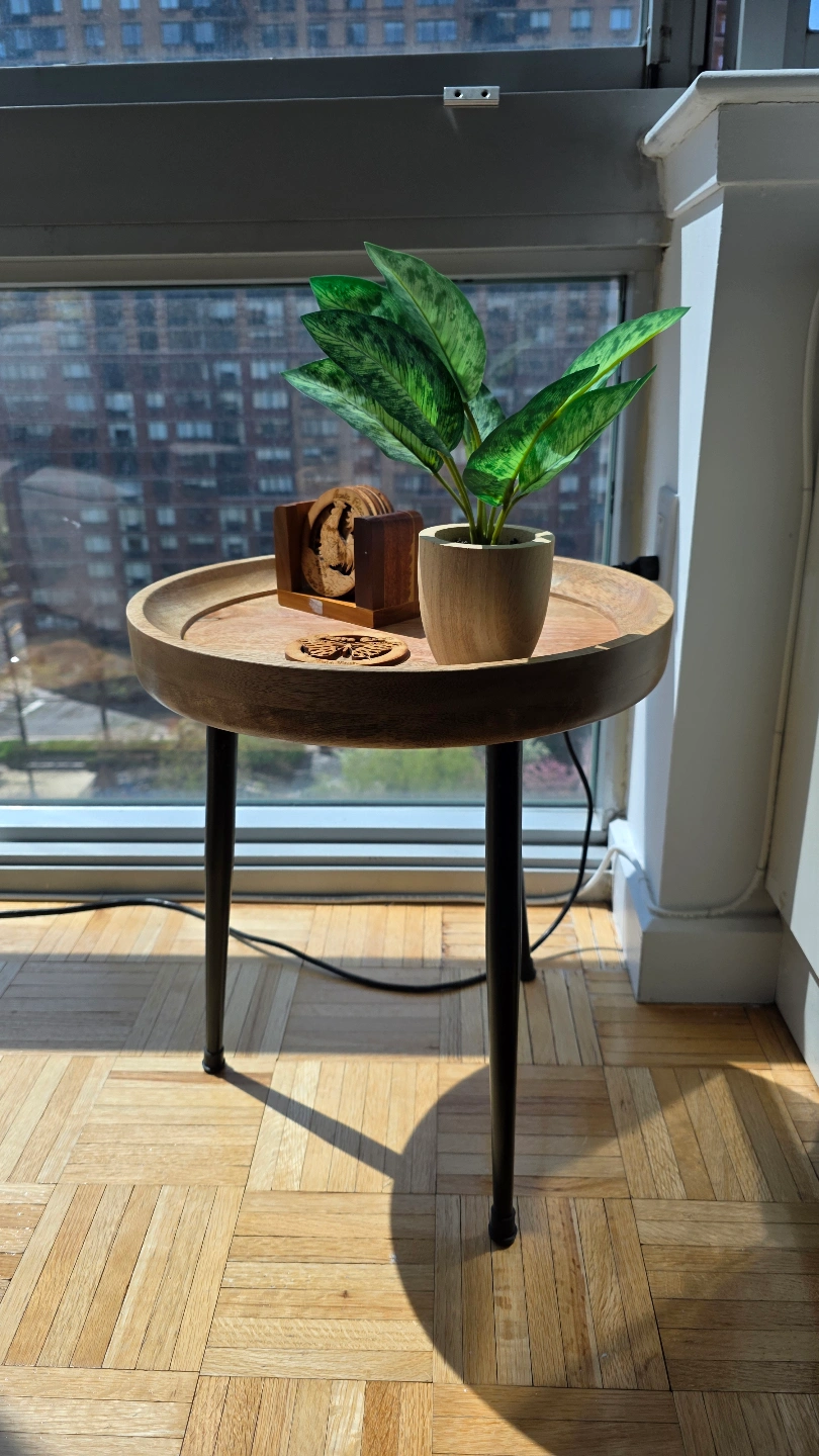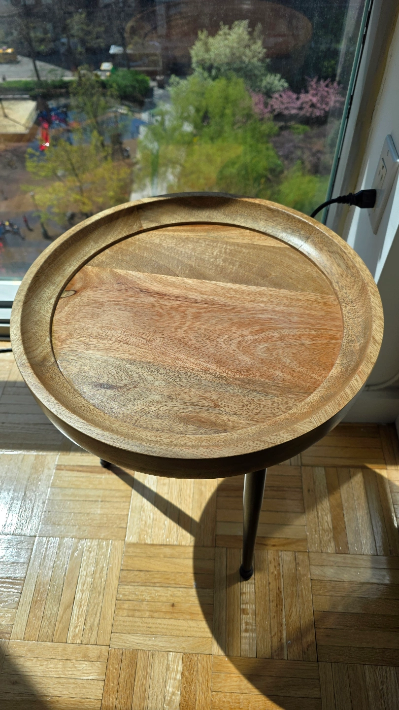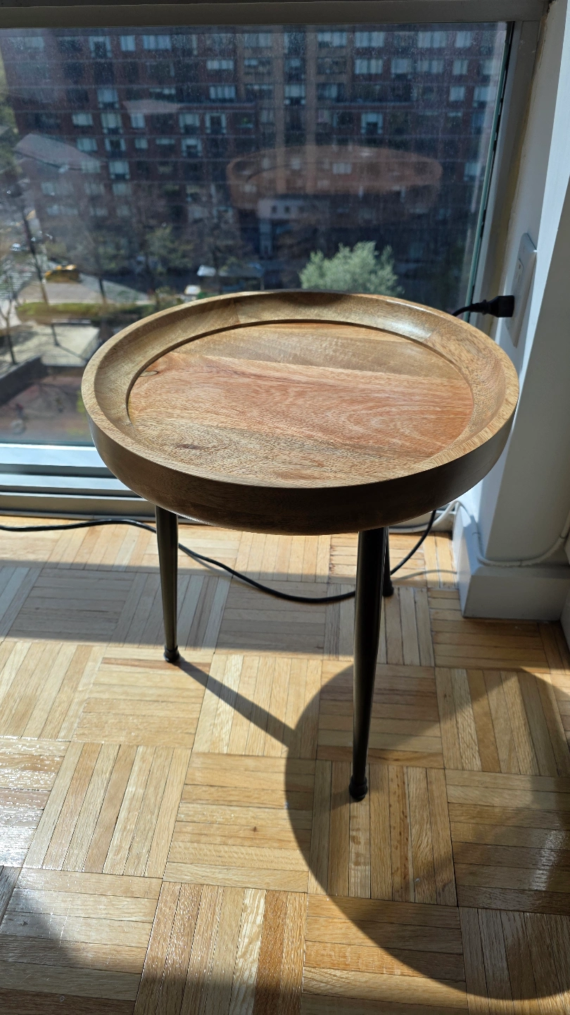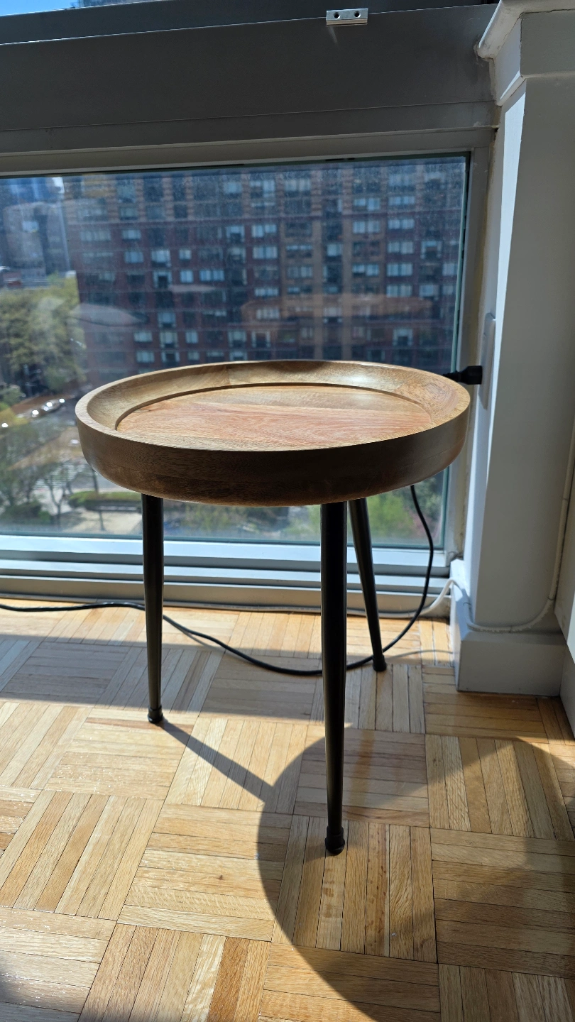 Selling a lightly used wooden side/end table in great condition. Works well in almost any space! Perfect size for trinkets, coasters, etc.