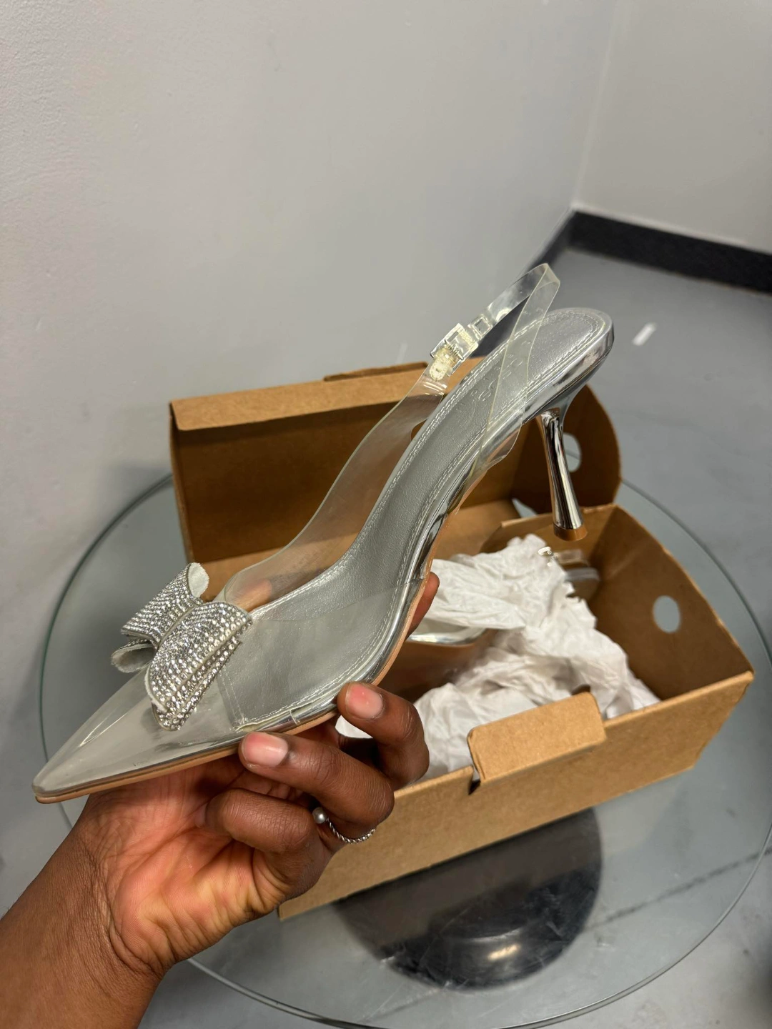 Selling these gorgeous ASOS silver heels – perfect for weddings, parties, or a night out. Features a sparkly rhinestone bow, clear strap, and pointed toe for a glam and modern look. Brand new and never worn, still in the original box! • Size: Fits 10-11 • Brand: ASOS • Condition: Brand new • Style: Silver with rhinestone bow & clear strap • Includes: Original box Pickup at 265 Rimrock Rd, North York – Unit 2B. Message me if you’re interested or want to try them on!
