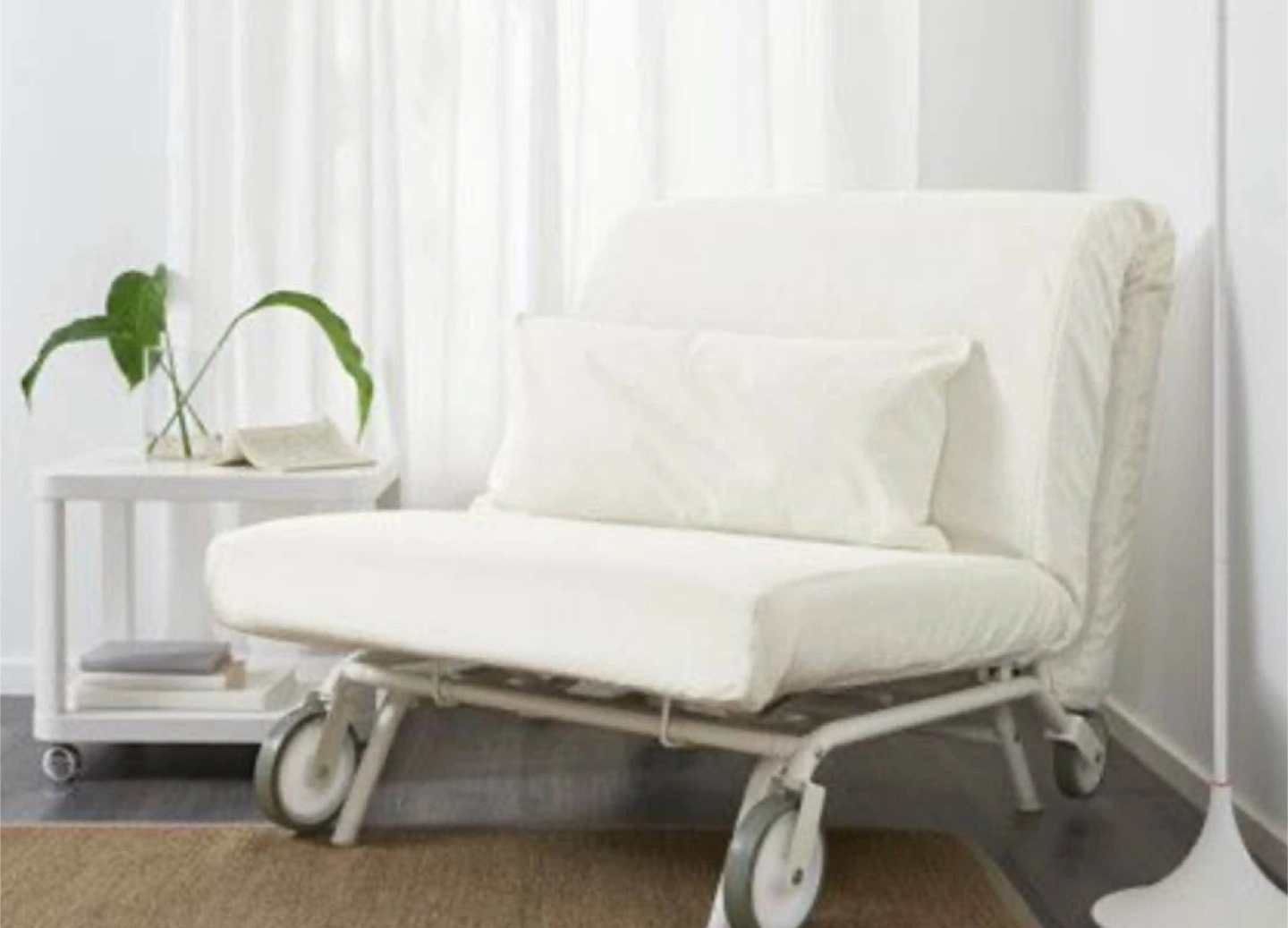Two IKEA PS LÖVÅS Chair beds - Contemporary - Futons - by IKEA | Two in one Bed and Sofa. white foldable chairs with wheels. Easy to store, great for guests. Includes instruction manuals. Excellent condition.