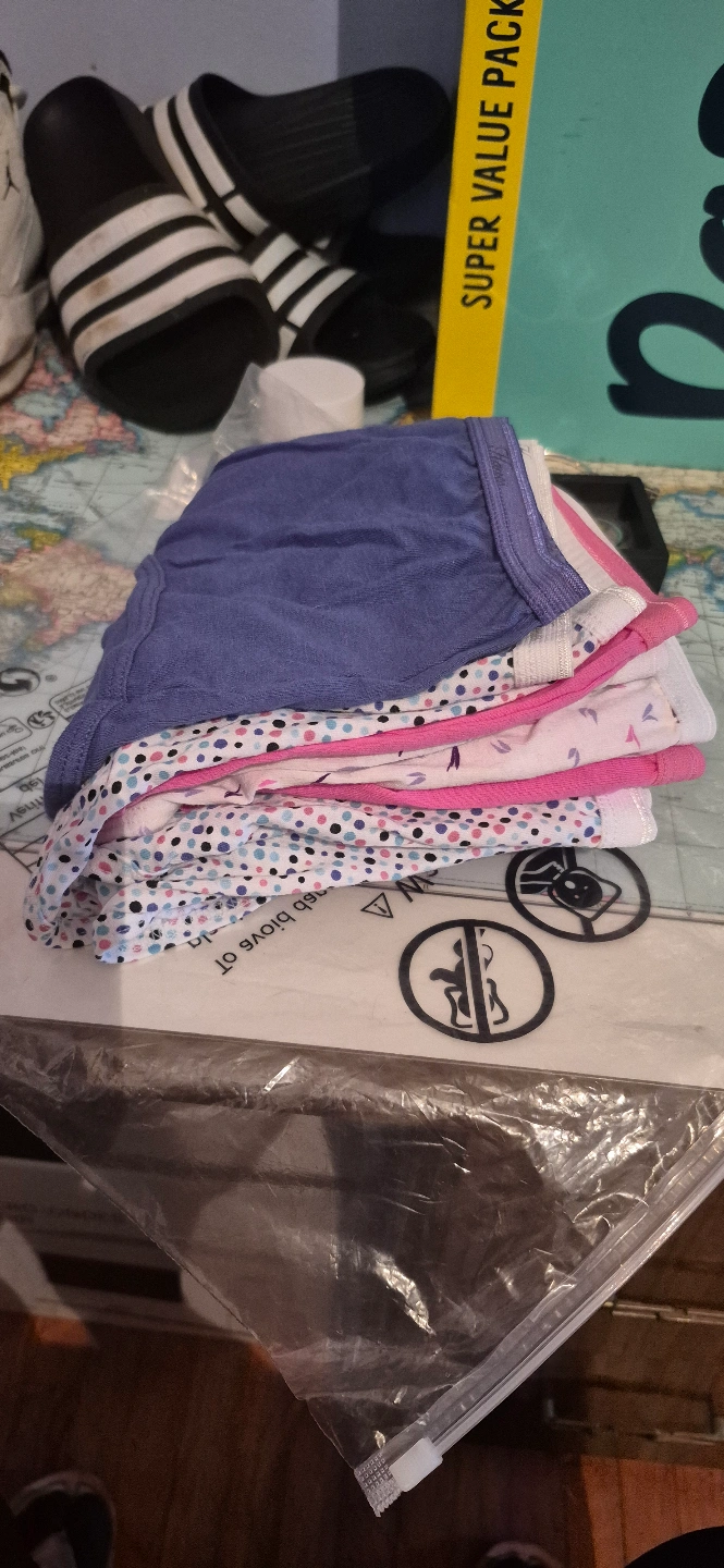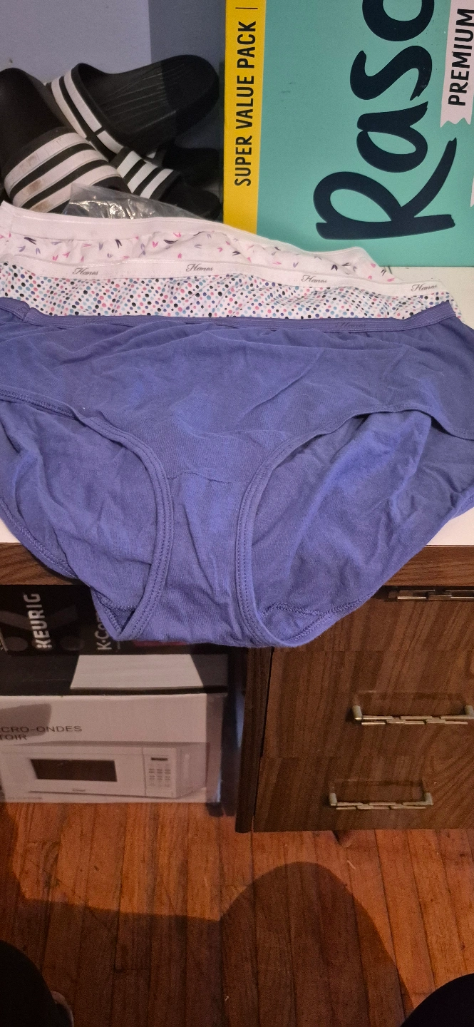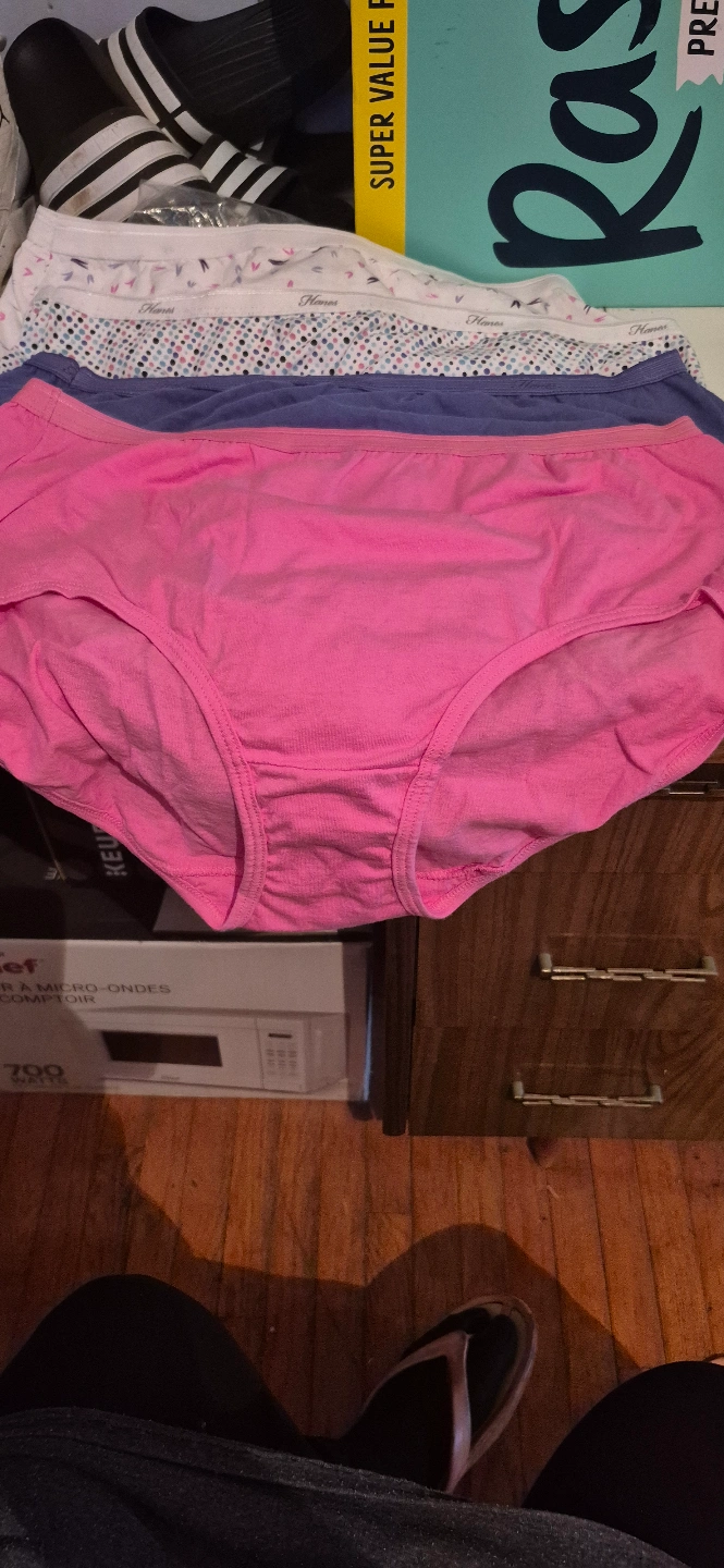 I am selling a lot of five pairs of ladies underwear, size 2x. Never worn, never used. still in it's package. took out to photograph them. Order came in wrong size. There 100 % Cotton, perfect for everyday use. they come from a smoke-free home. Colours 1 - pink 1 - blue 3 - white with flowers 3 - Haines 2 - Fruit of the Loom