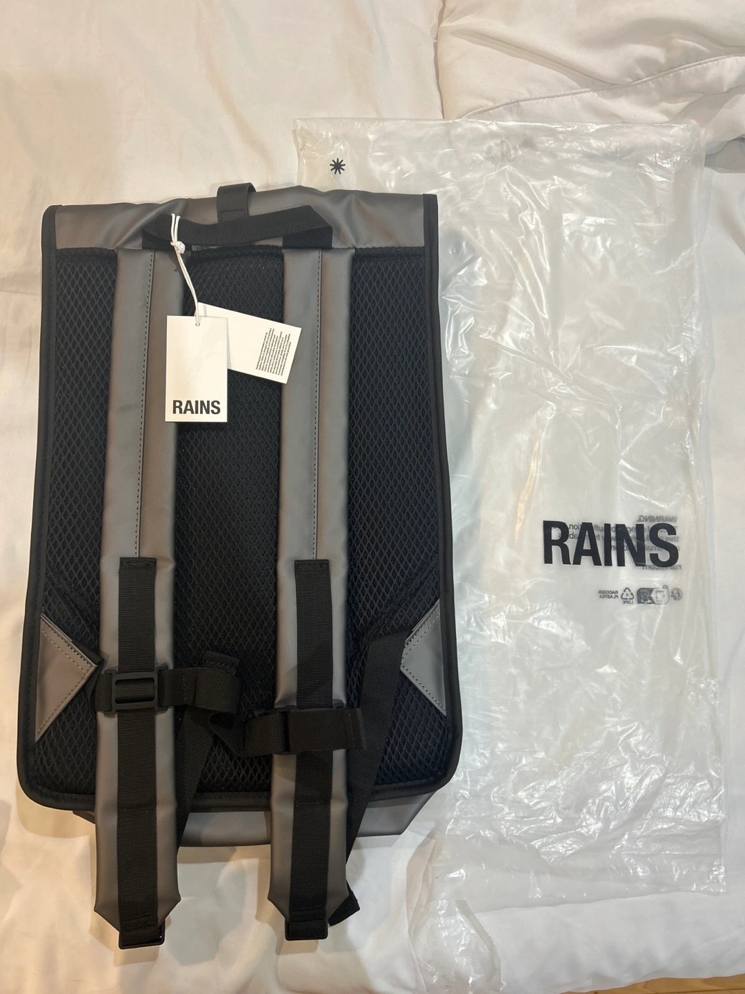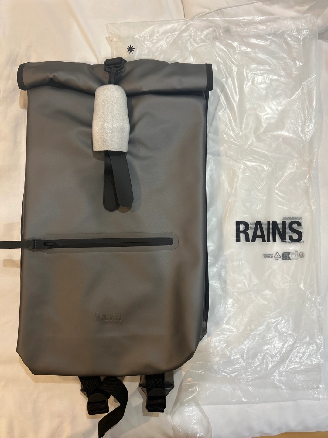 RAINS waterproof backpack. Rolltop closure. Adjustable straps. Gray color. Comes with protective bag.ππ