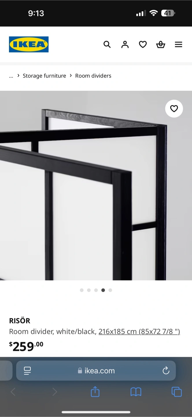 IKEA Black frame room divider. Made of solid wood, which is a durable and warm natural material.