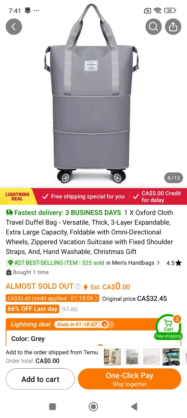 Brand New Large Capacity Foldable Rolling Duffel Bag-Gray colour