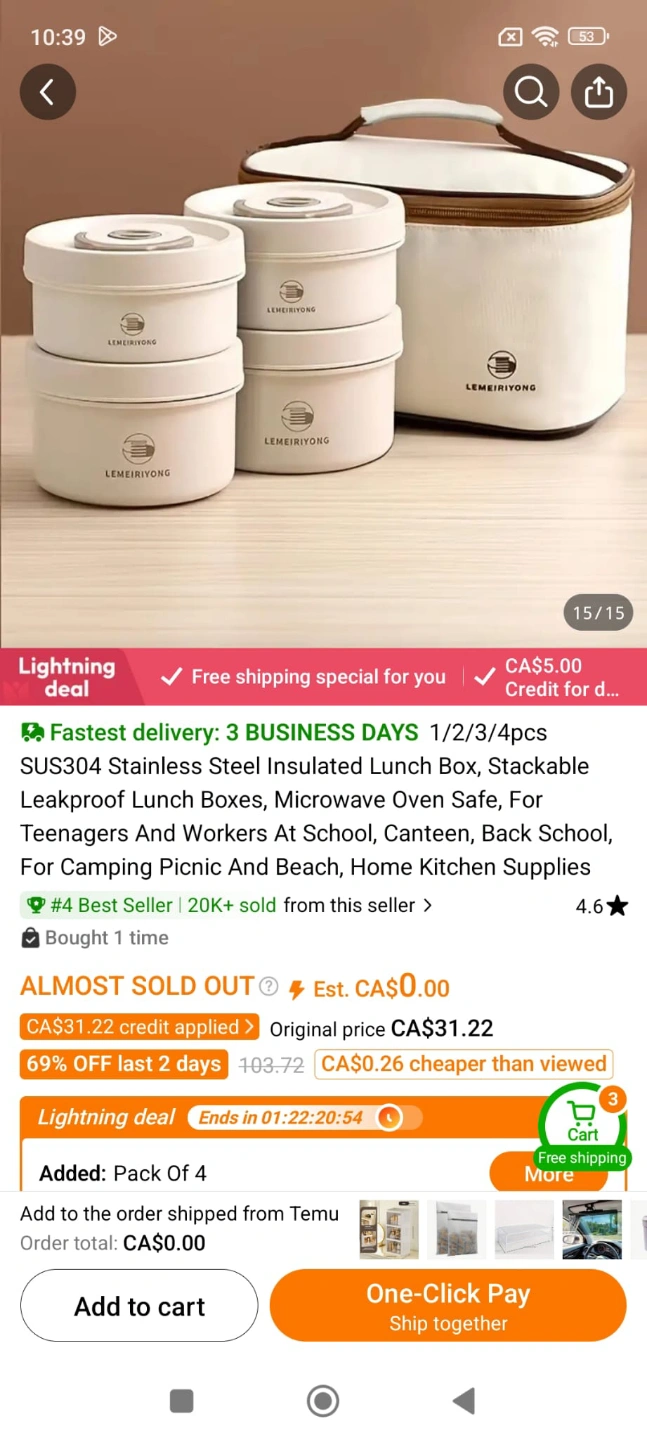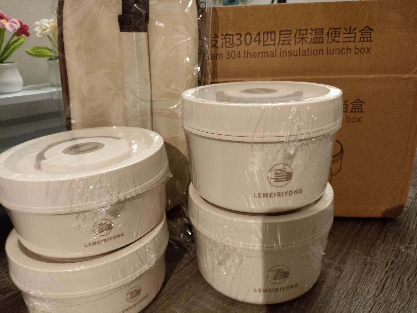 Leakproof, microwave and freezer safe. Suitable for school, work, picnics, and camping. Includes 4 containers and a carrying case. Built-in silicone ring prevents leaks. Durable 304 stainless steel. Split design for easy cleaning and heat insulation.