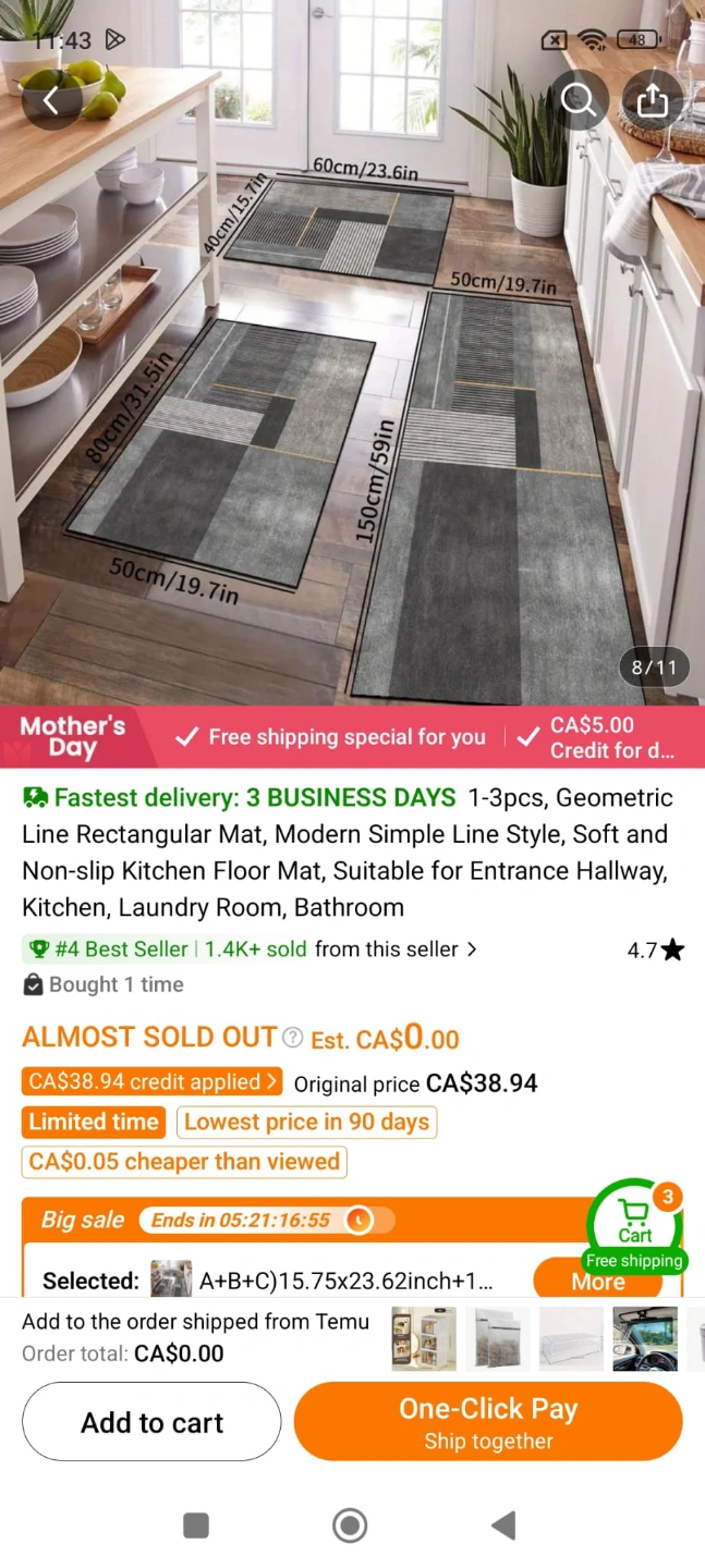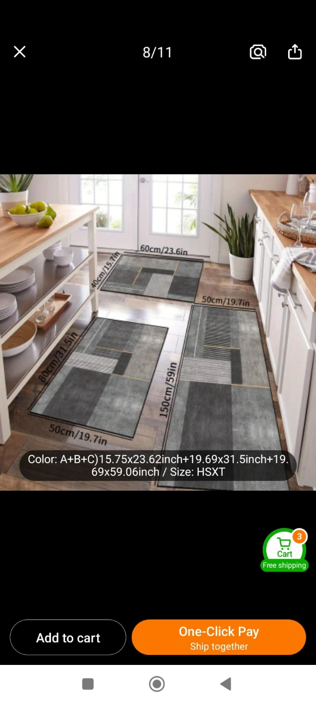 Brand New 3 pieces Modern Geometric Line Rectangular Floor Mat