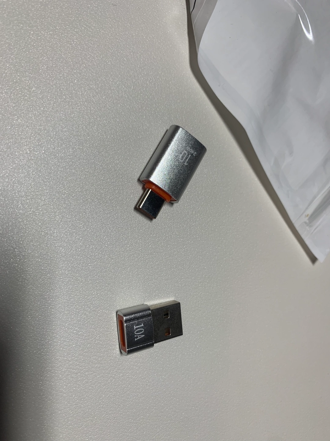 127Two adapters. One converts USB-C to USB-A. The other converts USB-A to USB-C. Compact and convenient.