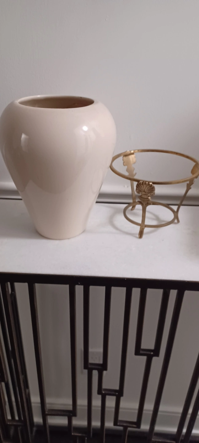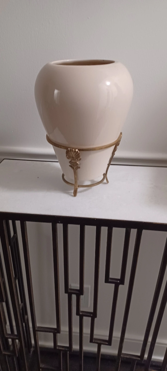 Cream ceramic pot with brass stand