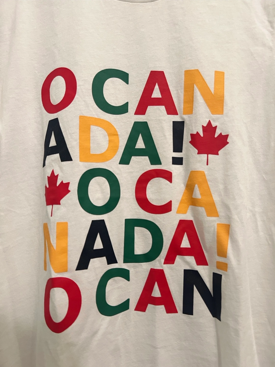 Features a graphic design spelling out "O Canada" in repeating colourful letters.