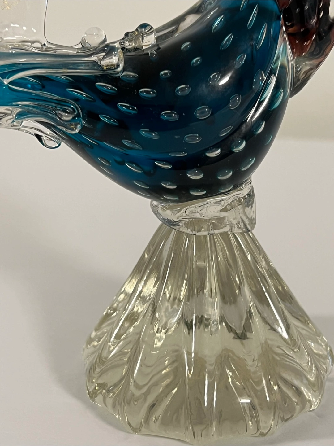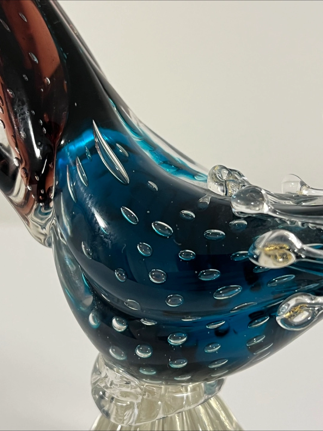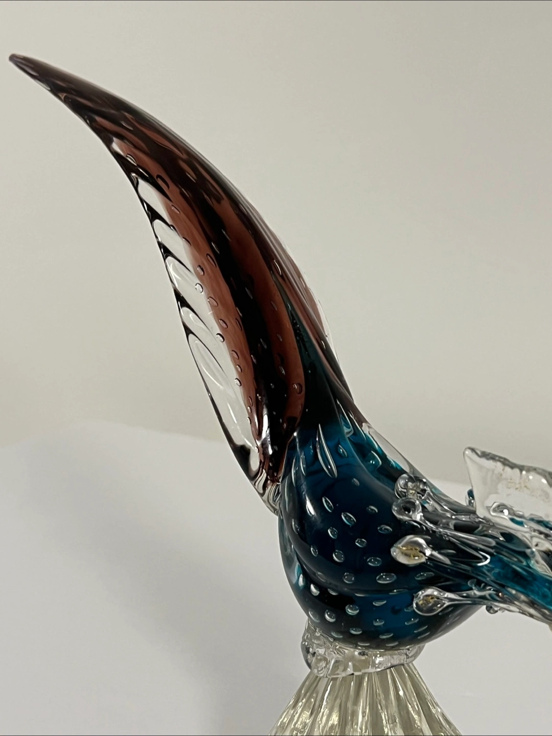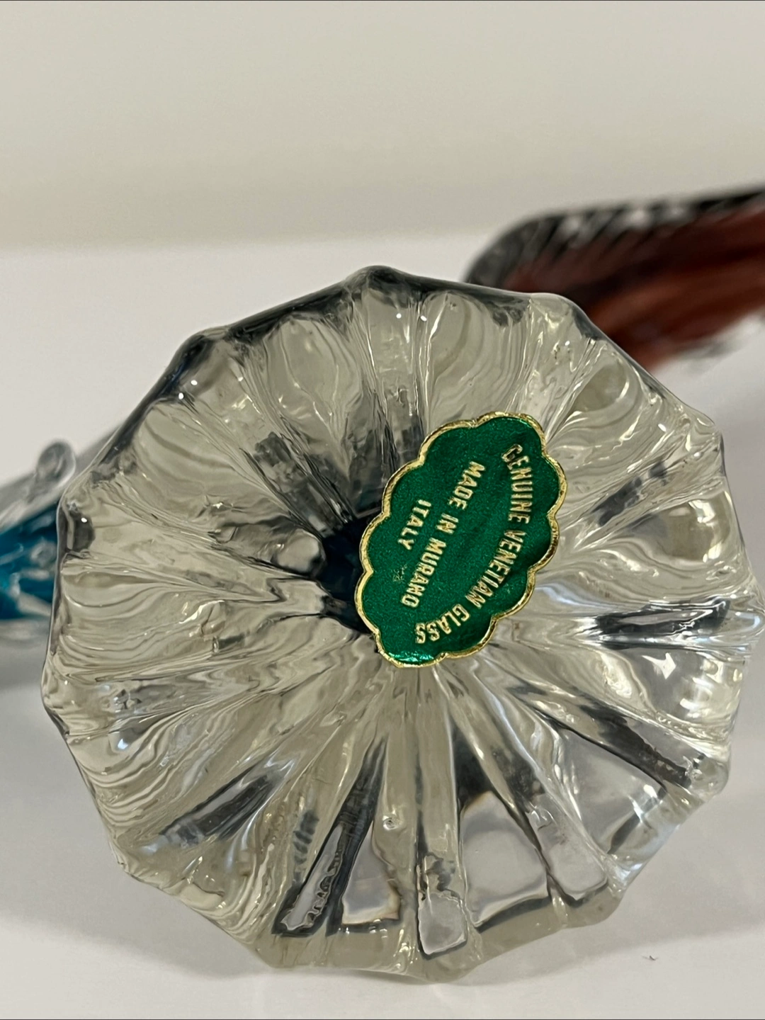 Beautiful hand blown glass pheasant. Teal and brown colours. Clear glass base. Unique collectible piece. Stickered Measures approximately 6 inches tall.