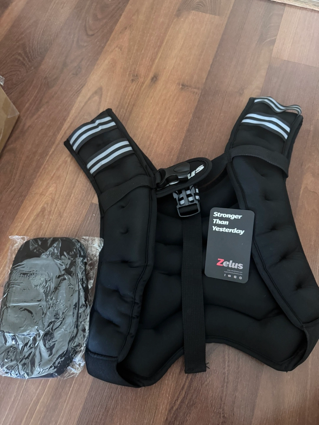 Black weighted vest, adjustable straps. Includes pouch. 10lbs