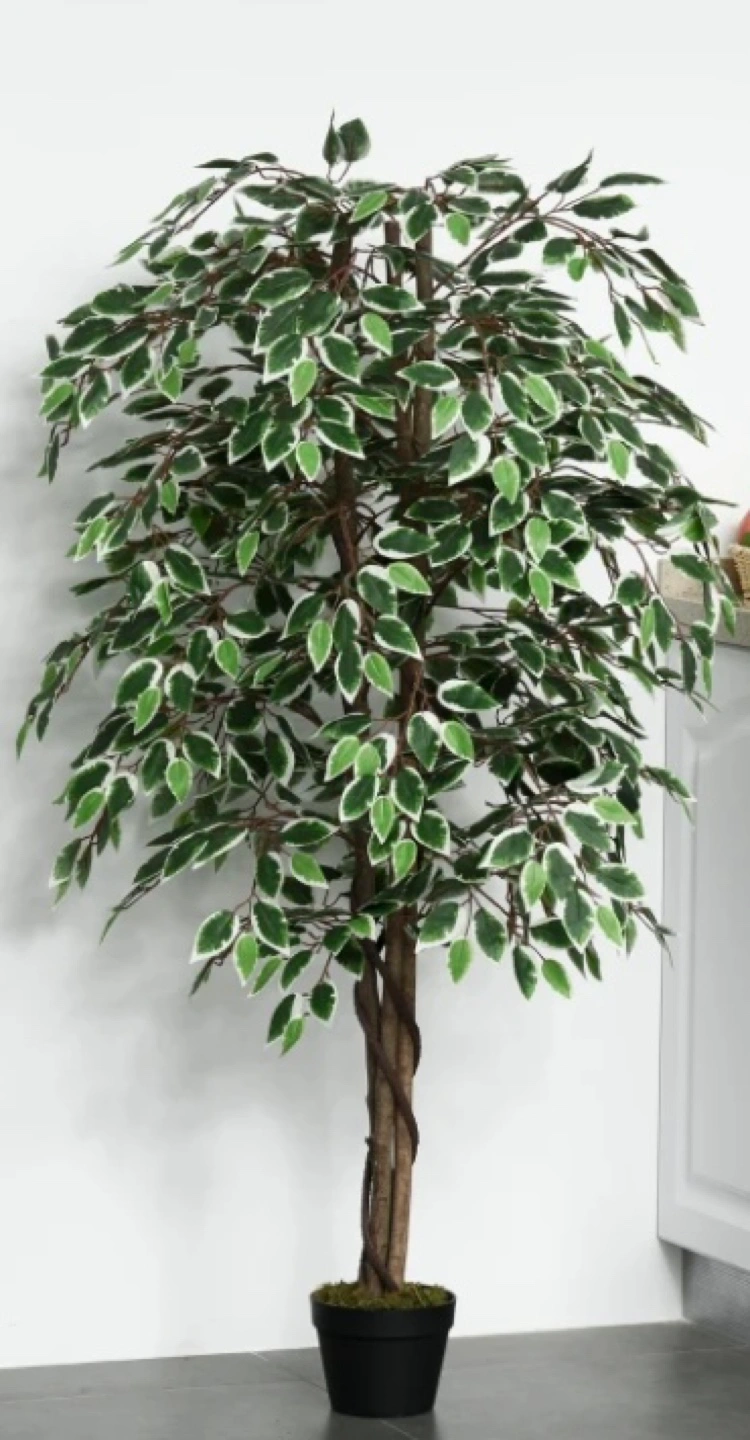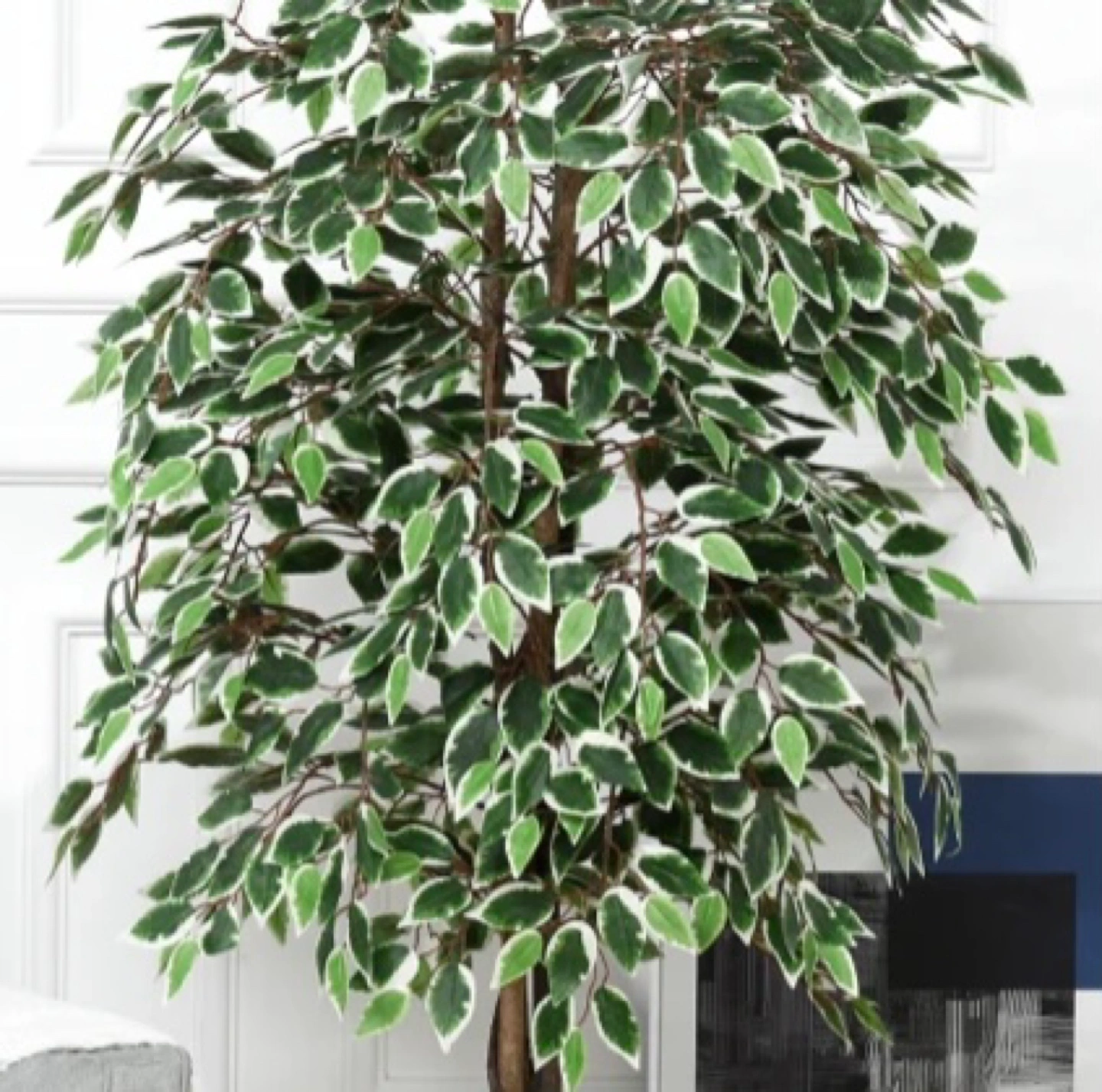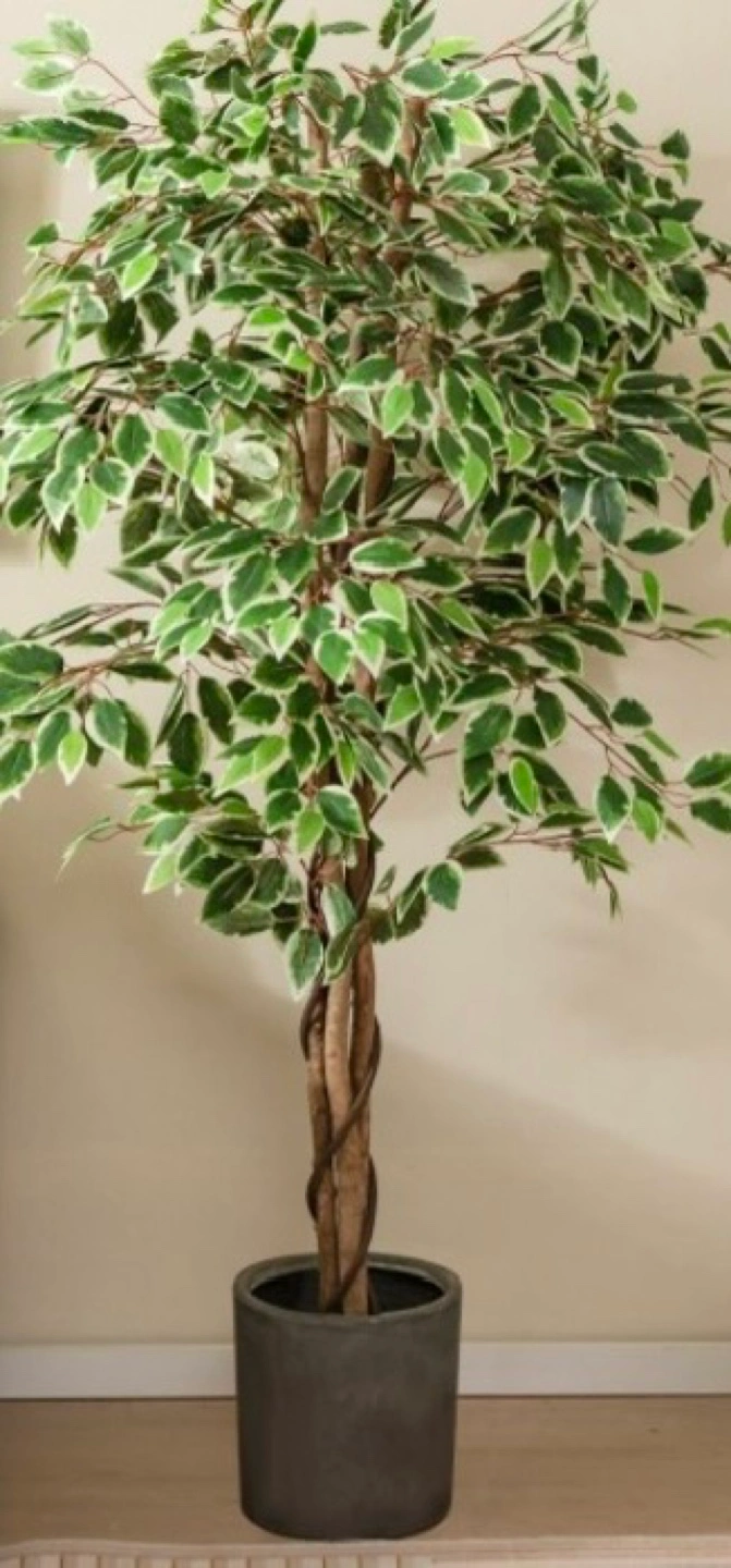 Eight (8) feet tall, see picture 2 (pictures 3 and 4 for reference of leaves 🍃 ). Potted in black plastic pot.