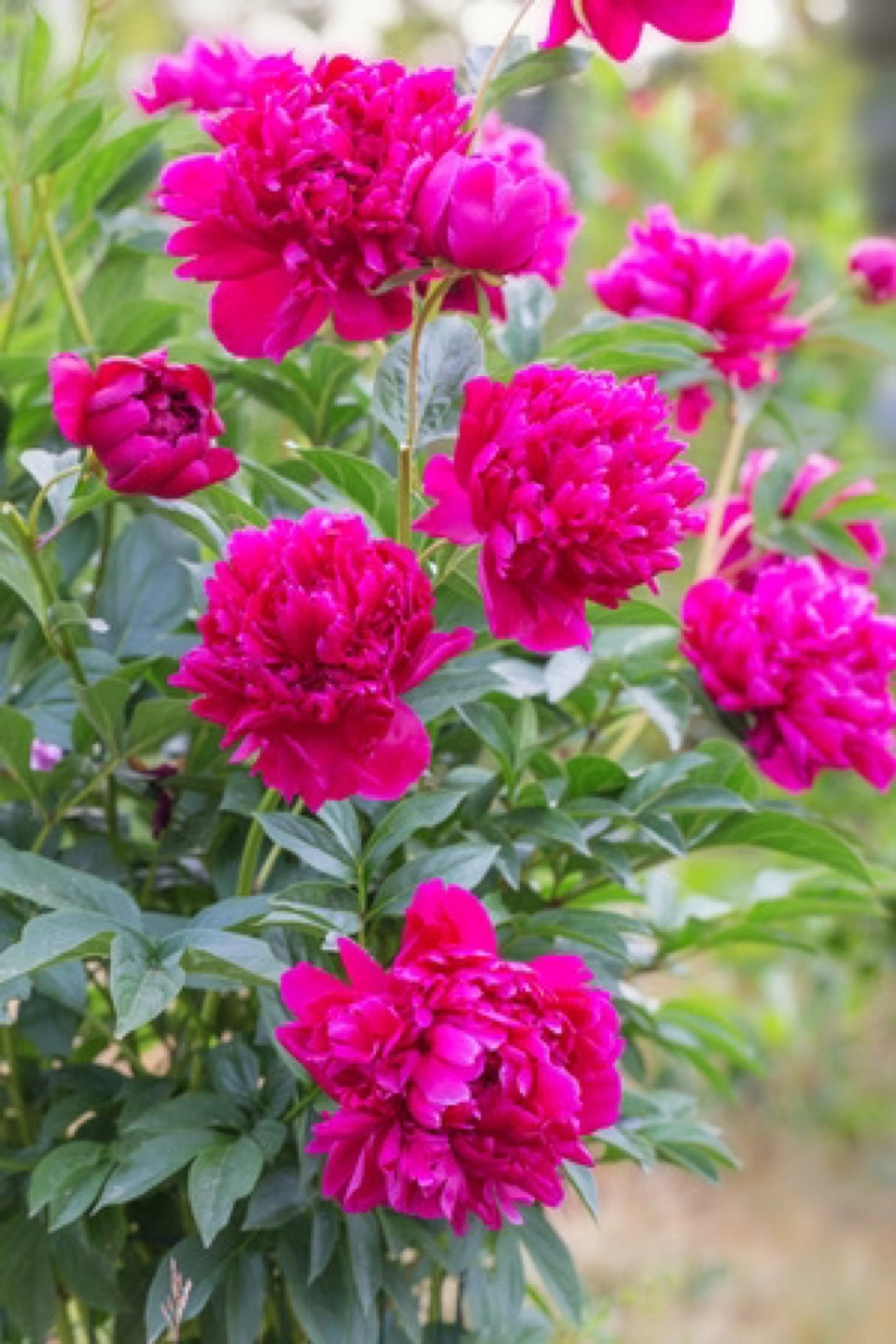 Beautiful, healthy peony plant in 1 gallon pot. Multiple blooms. Lush green foliage.