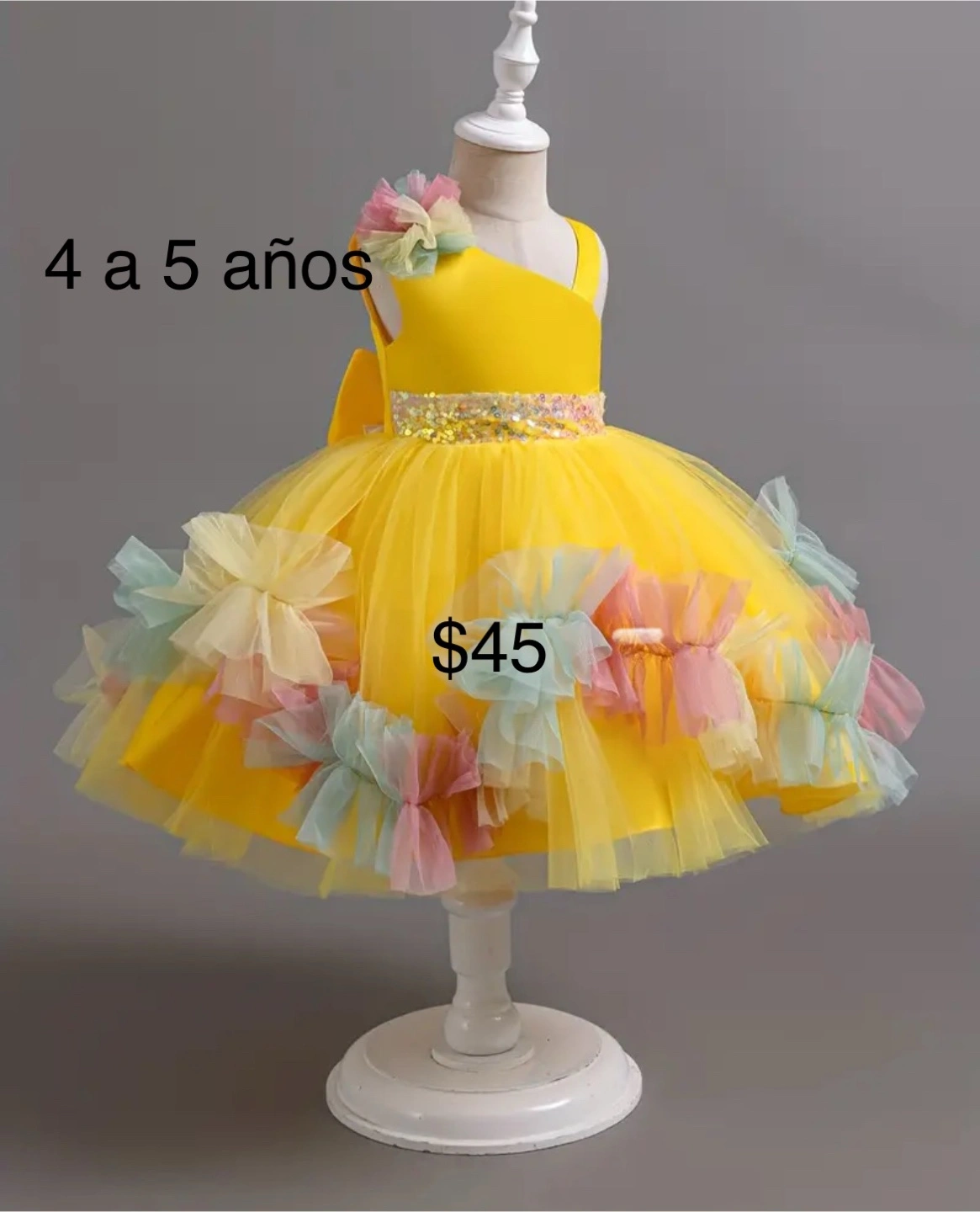 Beautiful yellow tulle dress. Sequin waistband. Pastel flower accents. Perfect for parties or special occasions. Size 4-5 years.