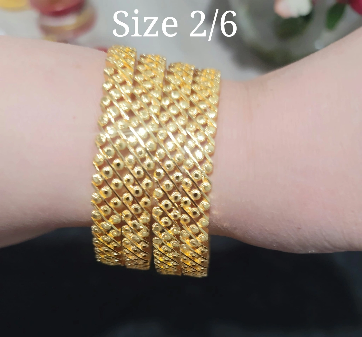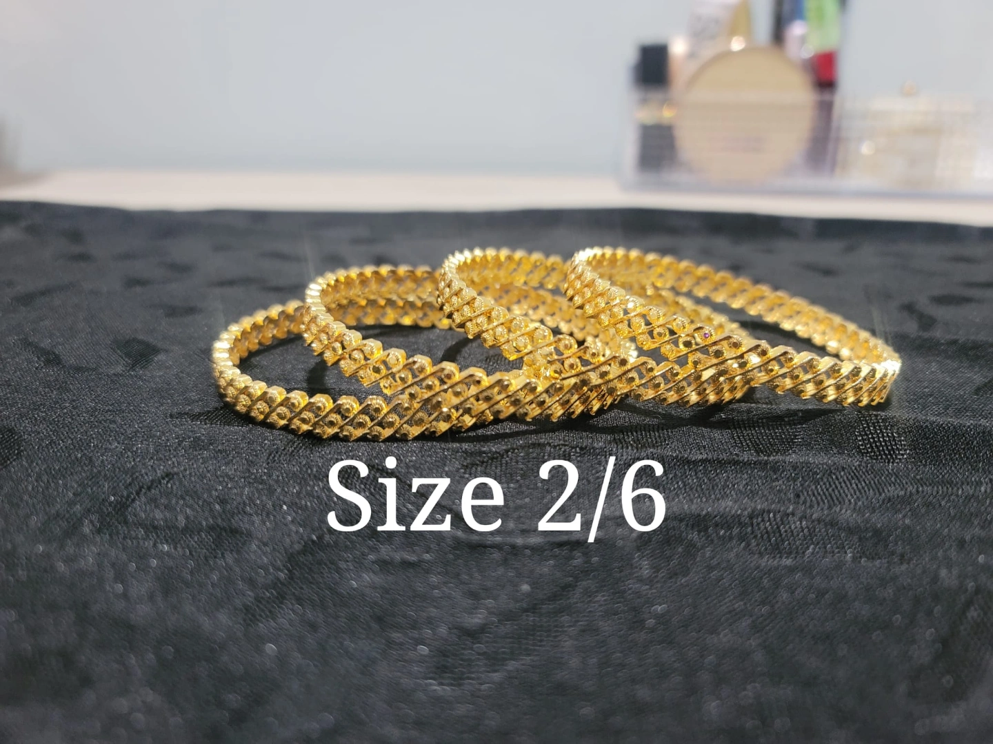 Set of three gold bangles. Size 2/6. Beautiful design, intricate detailing. Perfect for adding a touch of elegance to any outfit.