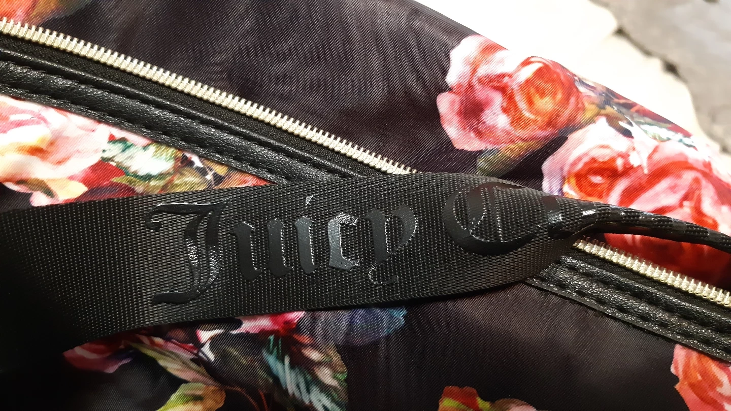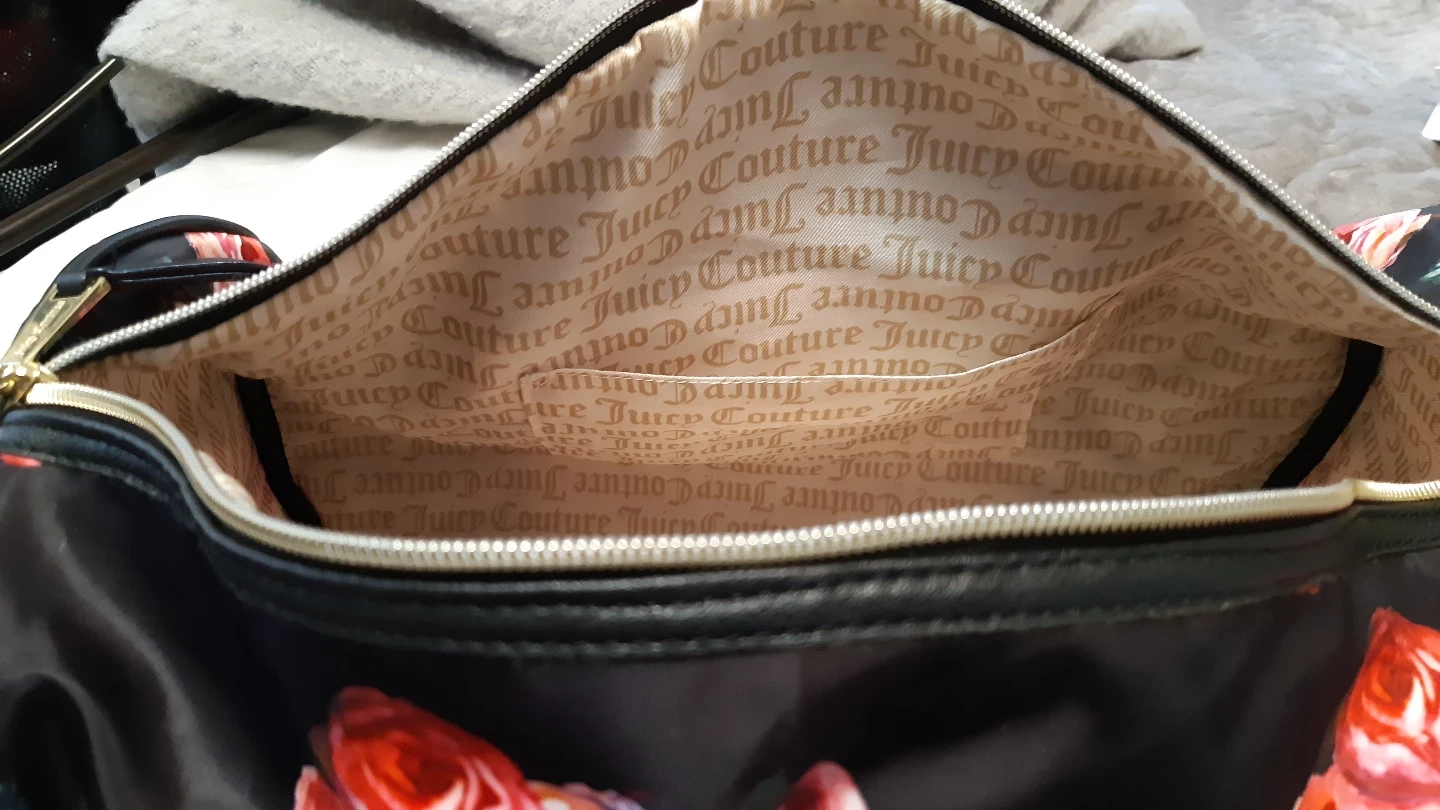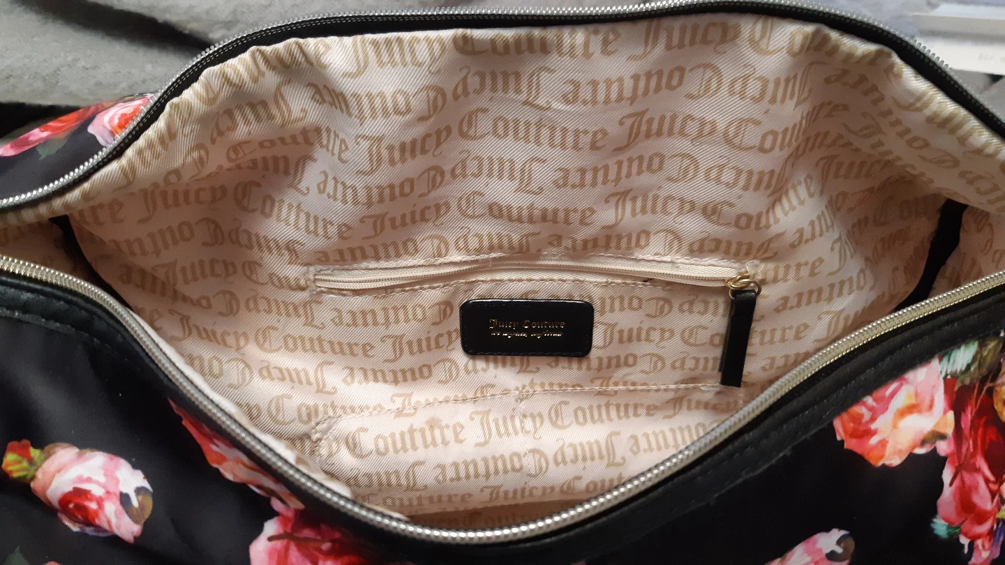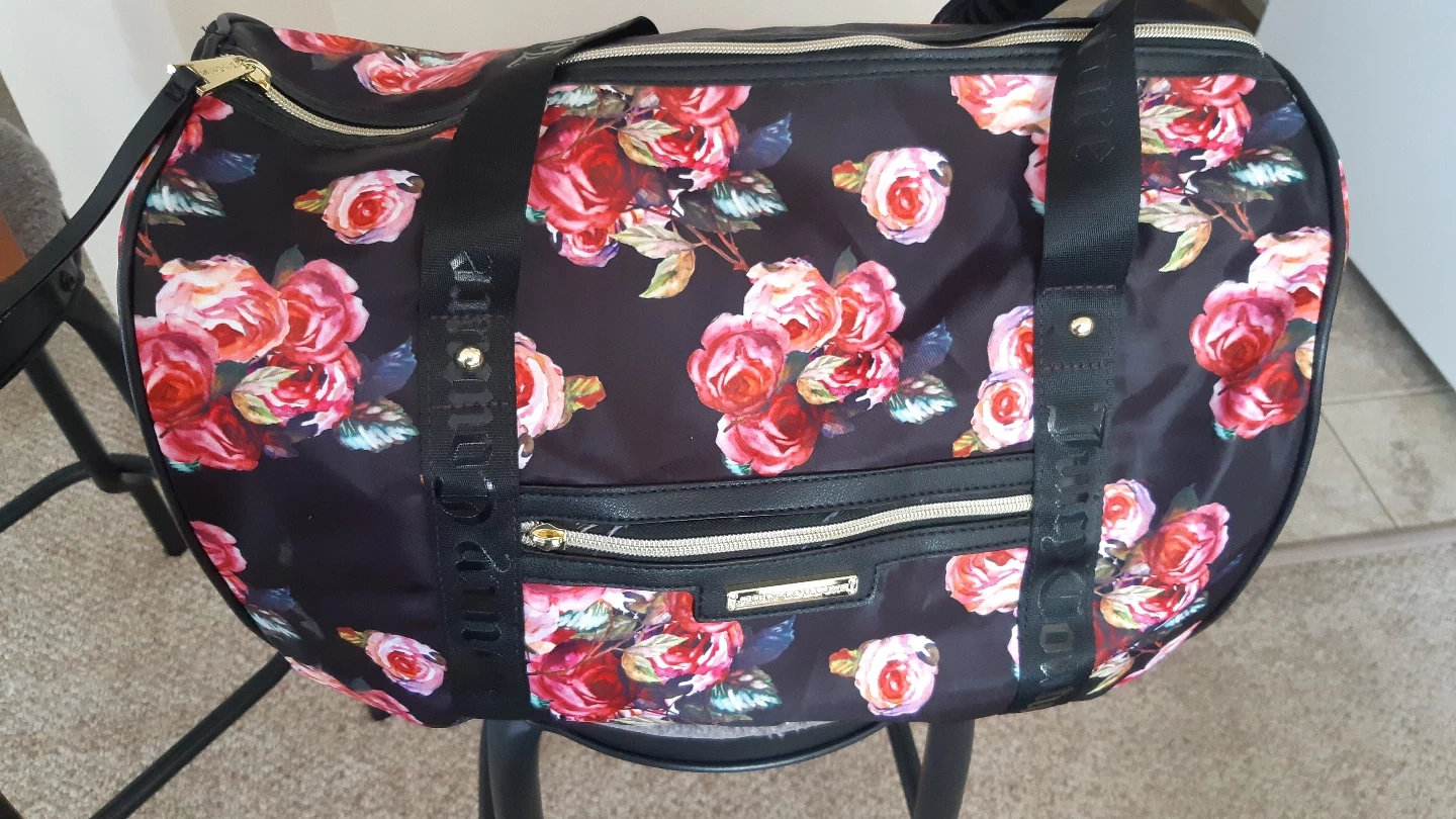 Gorgeous Juicy Couture weekender bag. Black background with a beautiful floral print. Features gold-toned hardware and black straps. like brand new condition.Perfect for travel or the gym. pickup location near Southgate mall