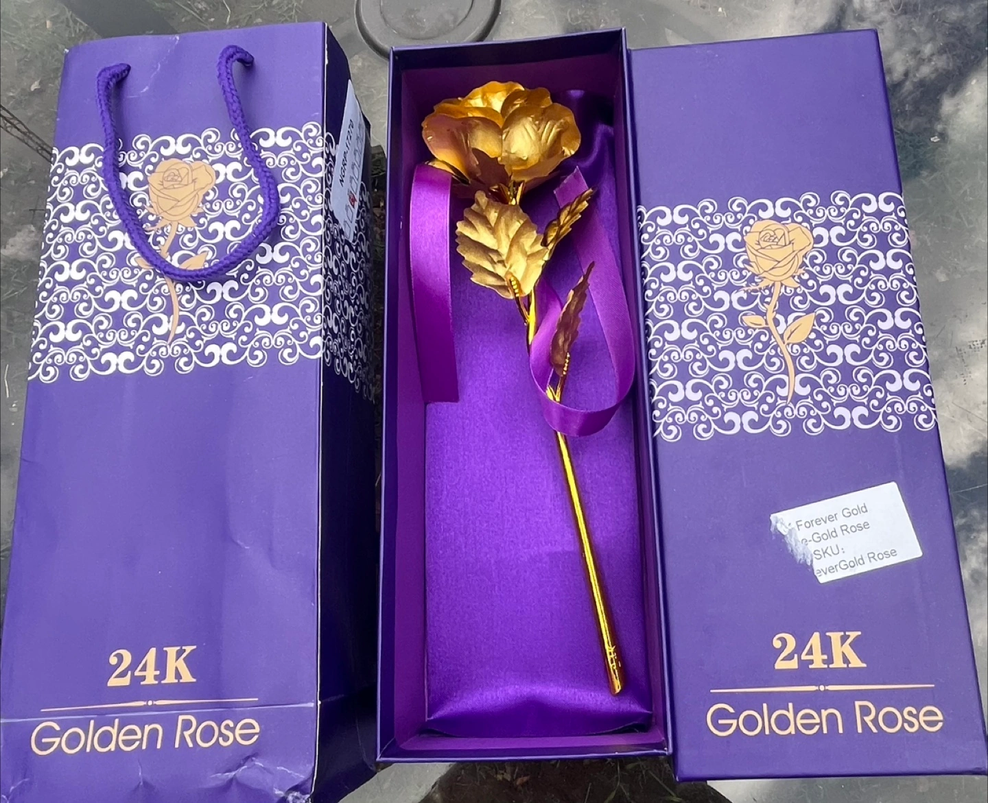 58Beautiful golden rose, 24K. Comes in a purple gift box with a matching gift bag. Perfect gift.