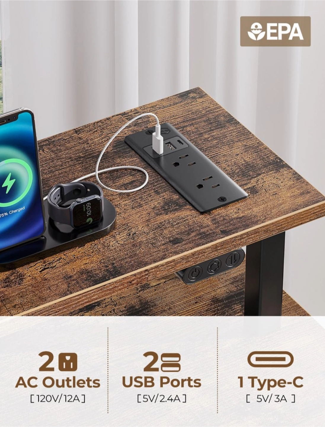 • Comes with drawers, storage shelves, and a raised monitor stand