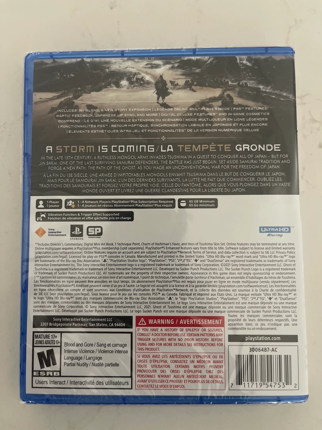 PlayStation 5 game. Director's Cut version. Includes Iki Island expansion and Legends online multiplayer mode. New game plus functionality. Rated M for Mature.
