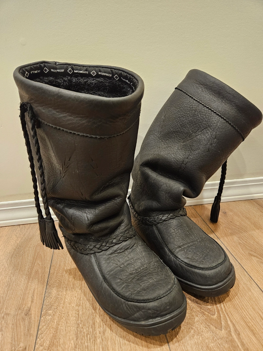 - Women's black leather Manitobah Mukluks.