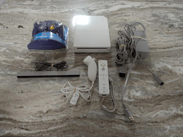 Wii console with Gamecube controller ports, Wii Remote, 512 GB SD card, and all necessary cords included. Also comes with a new aftermarket Gamecube controller. Includes 839 GB Games, 535 GBC Games, 1068 GBA Games, 785 SNES Games, 707 NES Games, 321 Sega Game Gear Games, 291 Sega Master System Games, 848 Sega Mega Drive/Genesis Games, 164 Gamecube Games, and 70 Wii Games. See pics for some game examples!