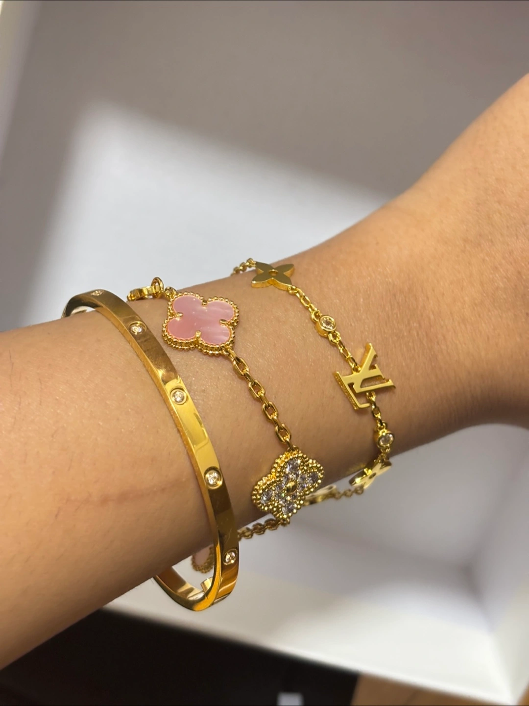 Beautiful set of three bracelets. Includes. Gold and silver options available. Excellent condition. Love bangle $50 L-V chain $60 Clover $70 Material: 18K gold filled Doesn’t tarnish Msg me for more info