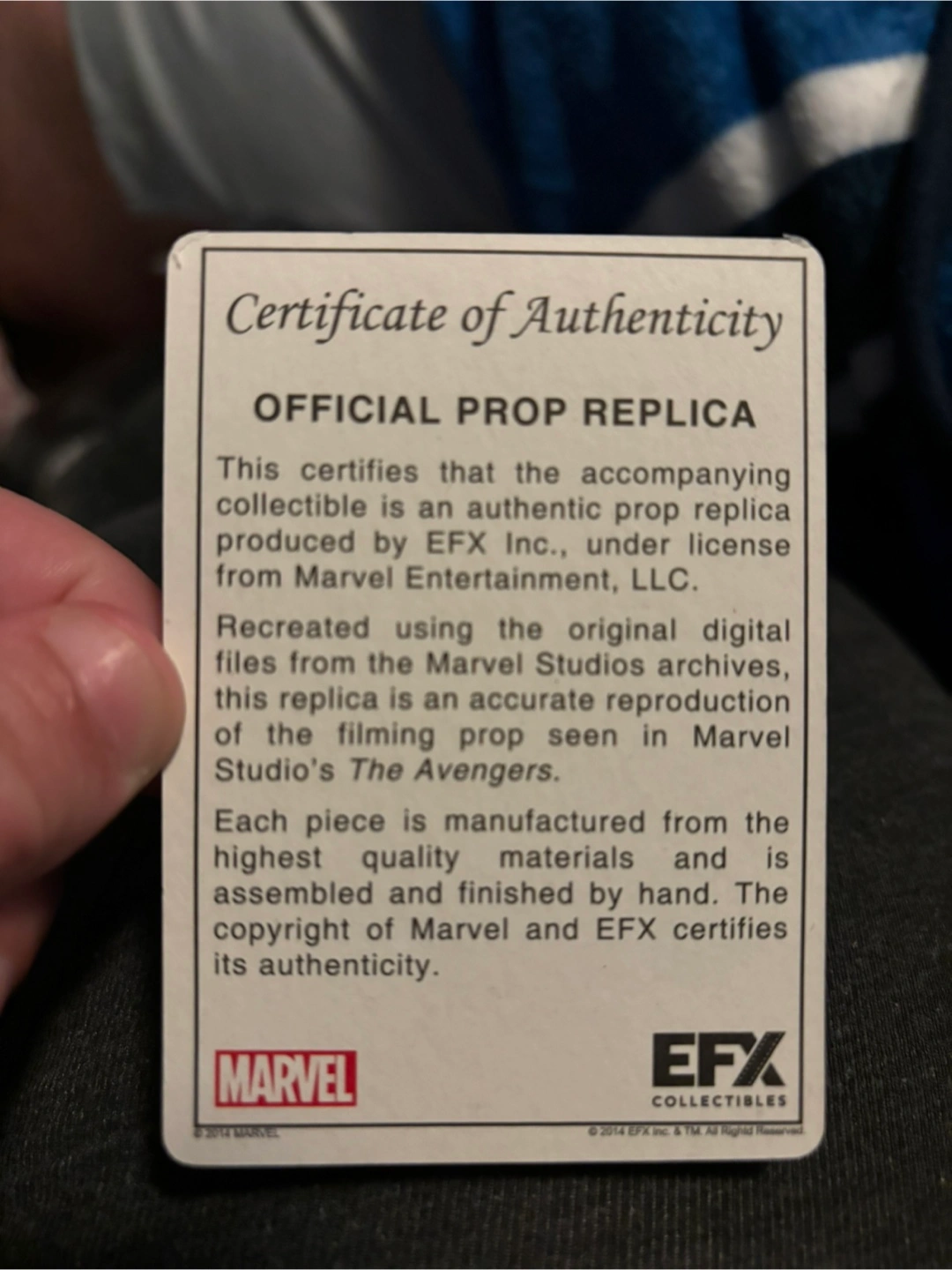 44Two complete sets of trading cards. Marvel Avengers collectible. Official prop replica. Comes in a box. EFX Collectibles.