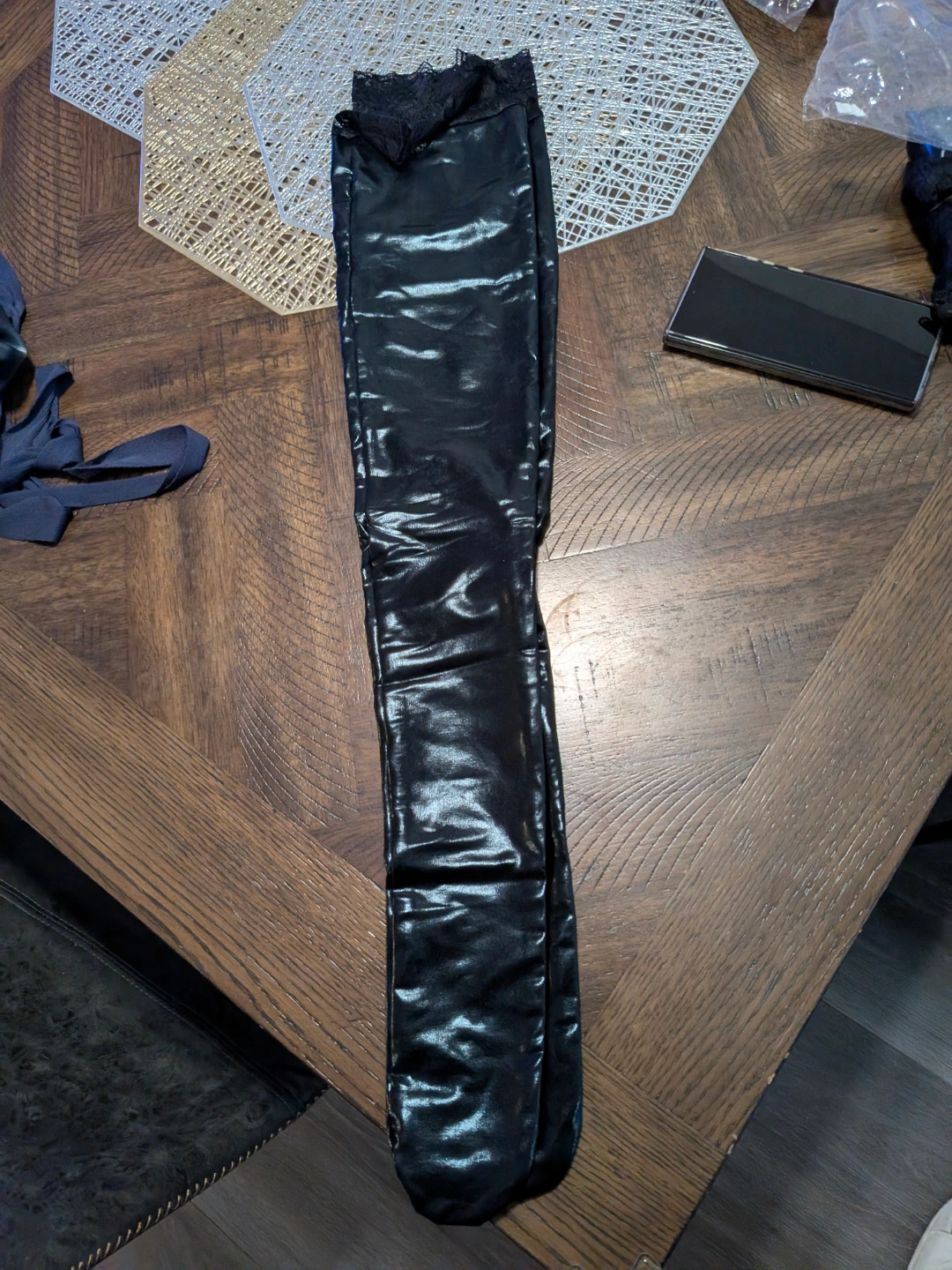 Black lace lingerie set. Includes a halter-style bra and high-waisted panties. Features cross detailing and cut-outs.