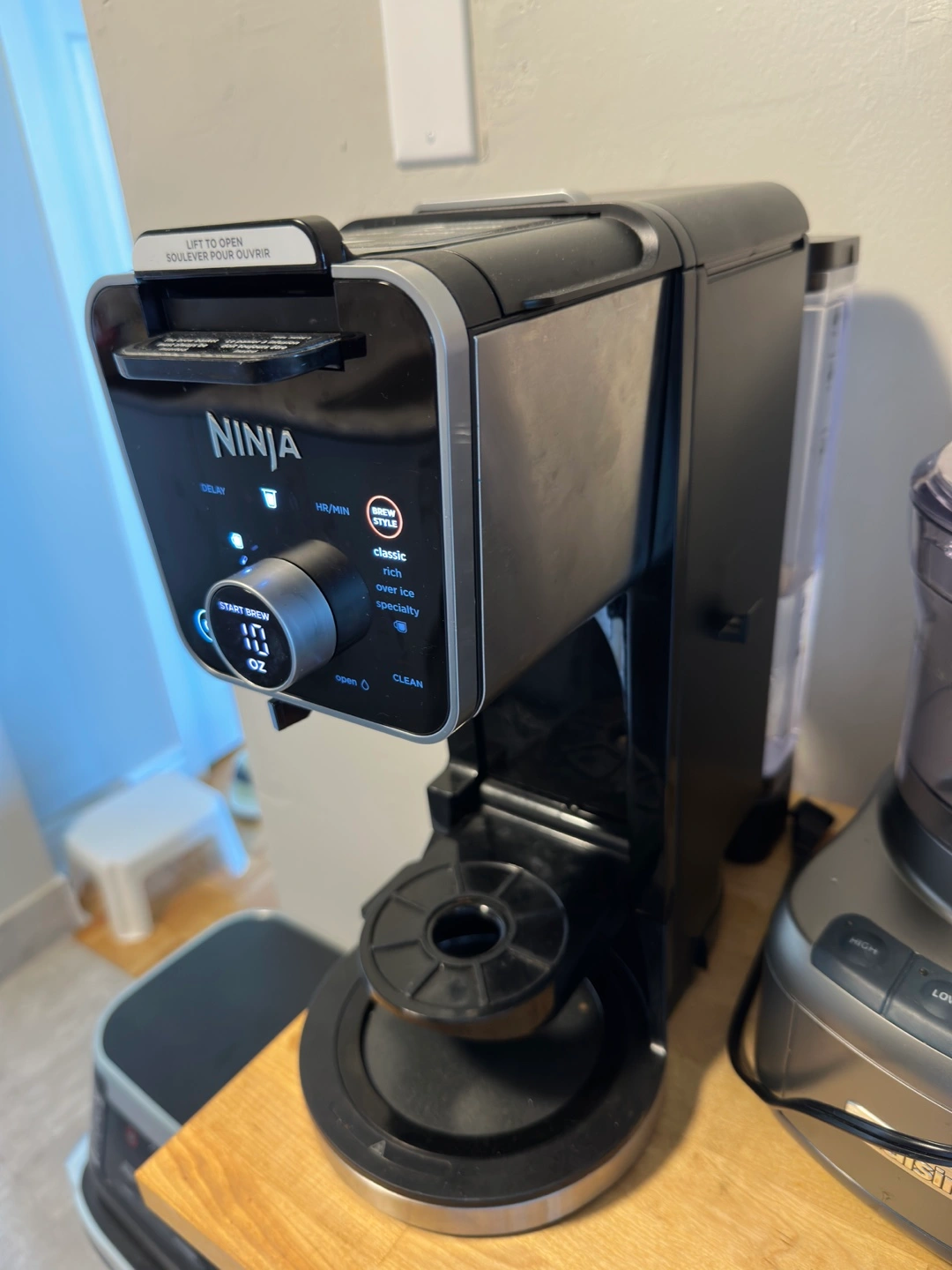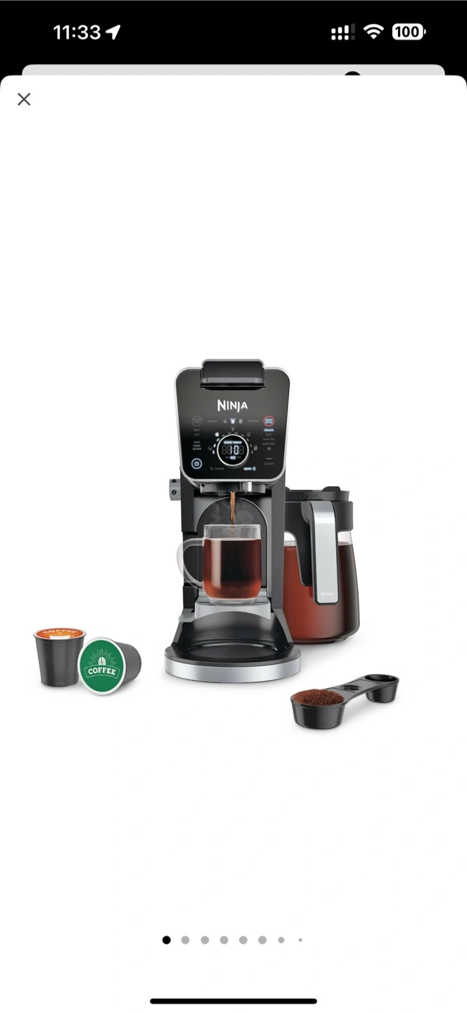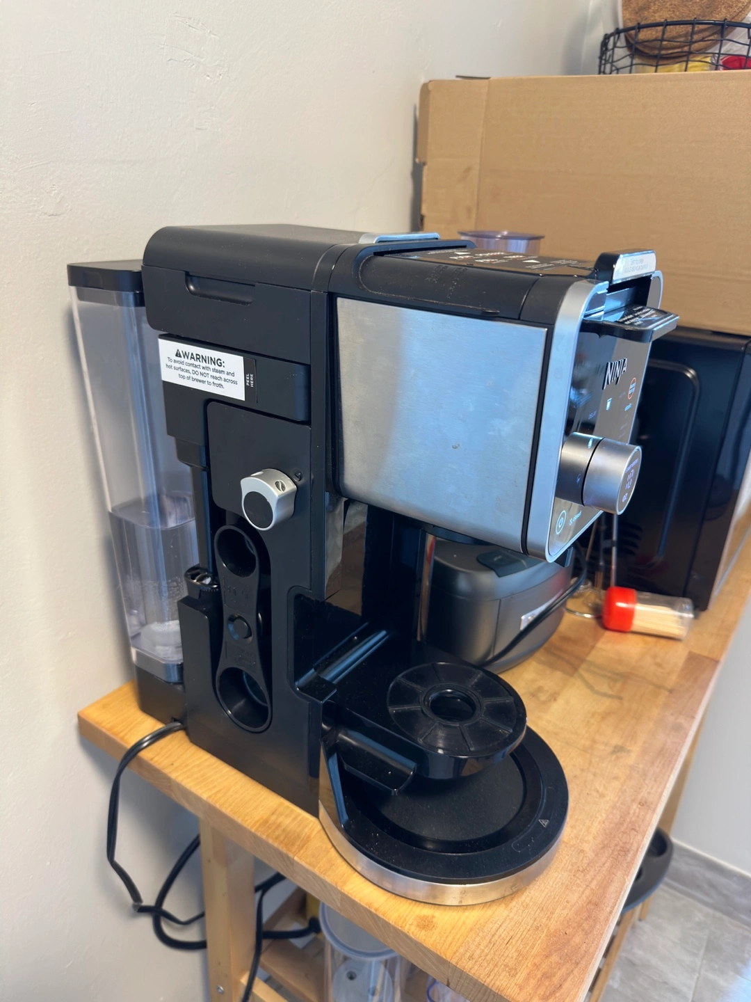 Ninja coffee maker. Brew coffee, tea, and specialty coffee drinks. Makes single serve or full carafe. Includes various brew sizes and strength settings. Can be used with grounds & Kcup pods. Used condition.