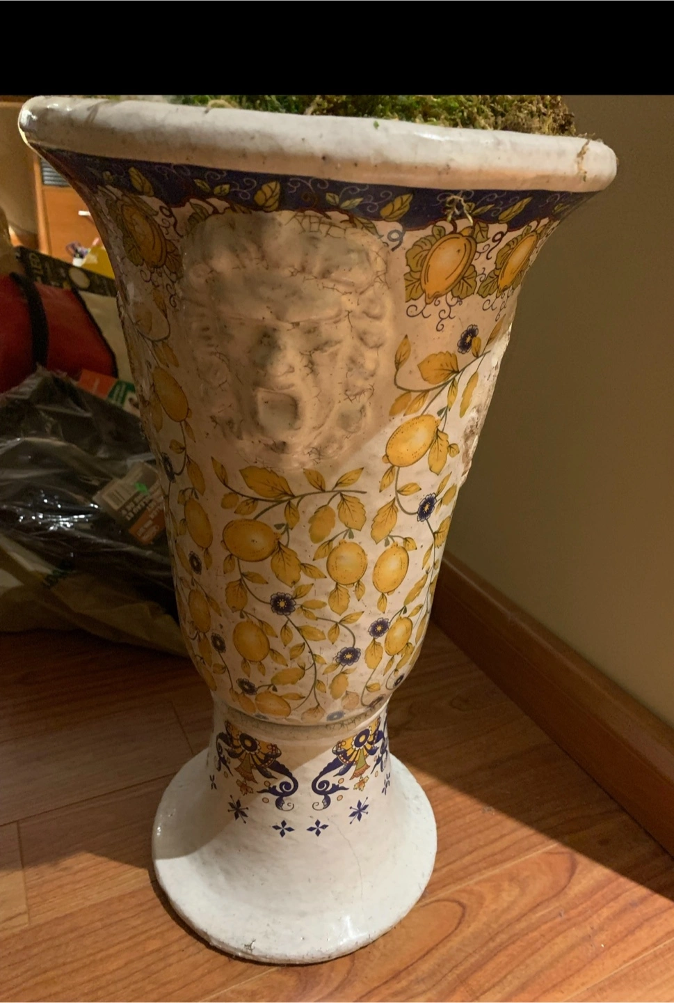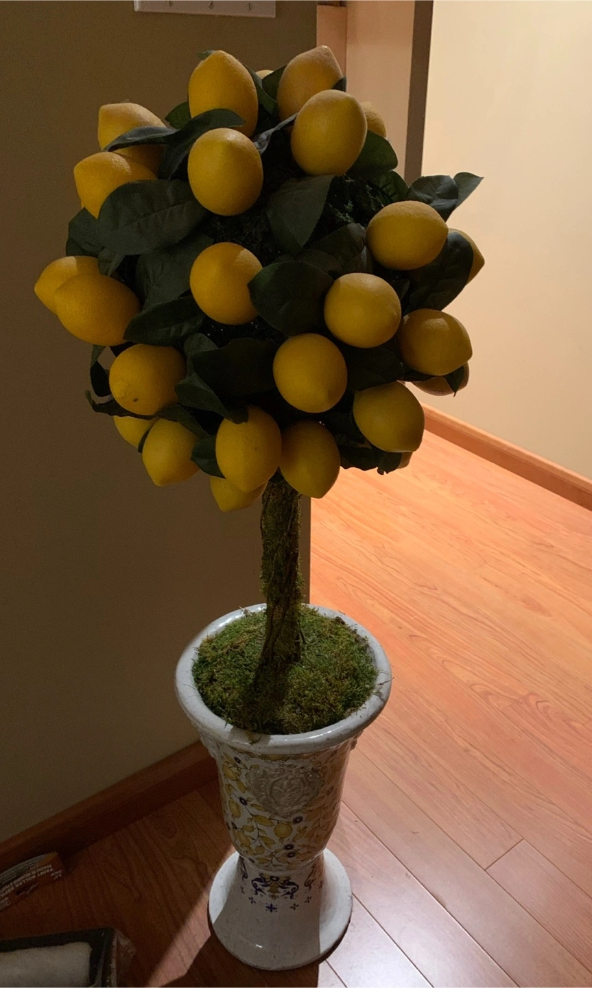 93Beautiful decorative lemon tree. Artificial lemons and leaves. Planted in a lovely ceramic pot with intricate detailing. Perfect for adding a touch of Mediterranean flair to your home.