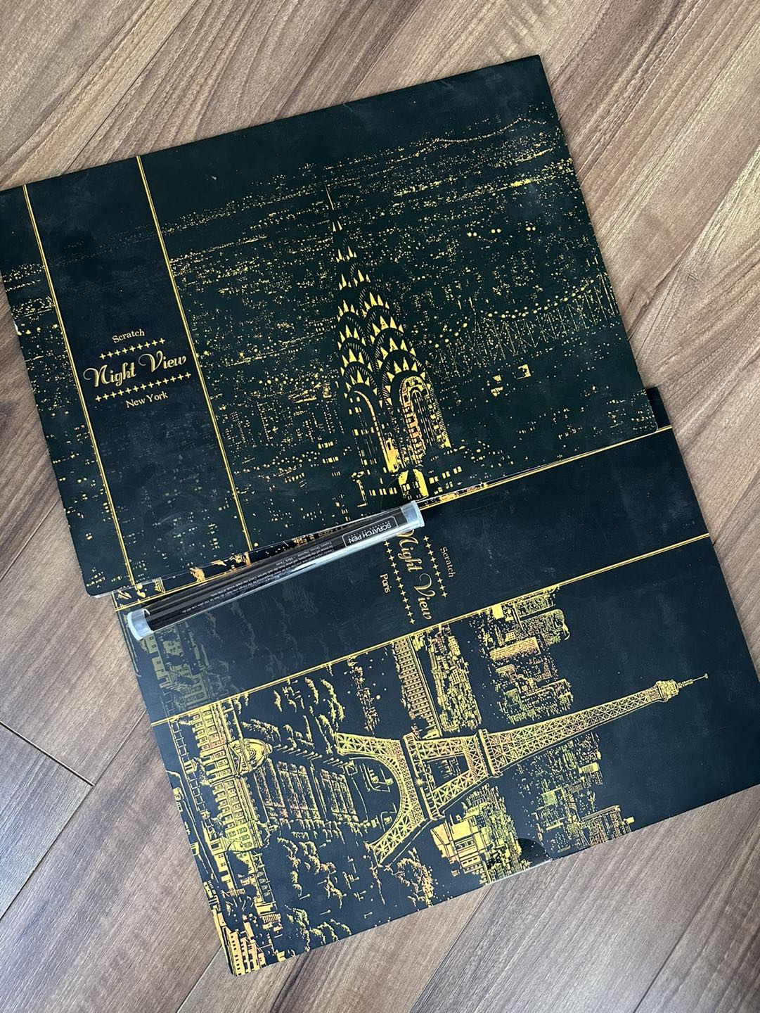 New York & Paris. Comes with scratching pen. New York is about half finished and Paris is new.