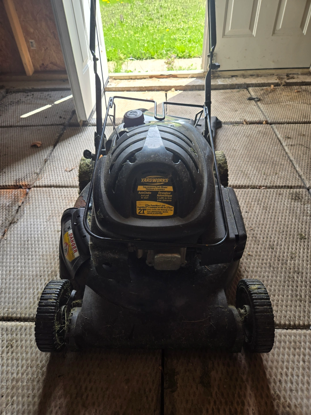 Used Yardworks 21-inch gas push lawn mower. Includes grass catcher. The previous owner left it behind so I don't know how well it works since I've never used it.